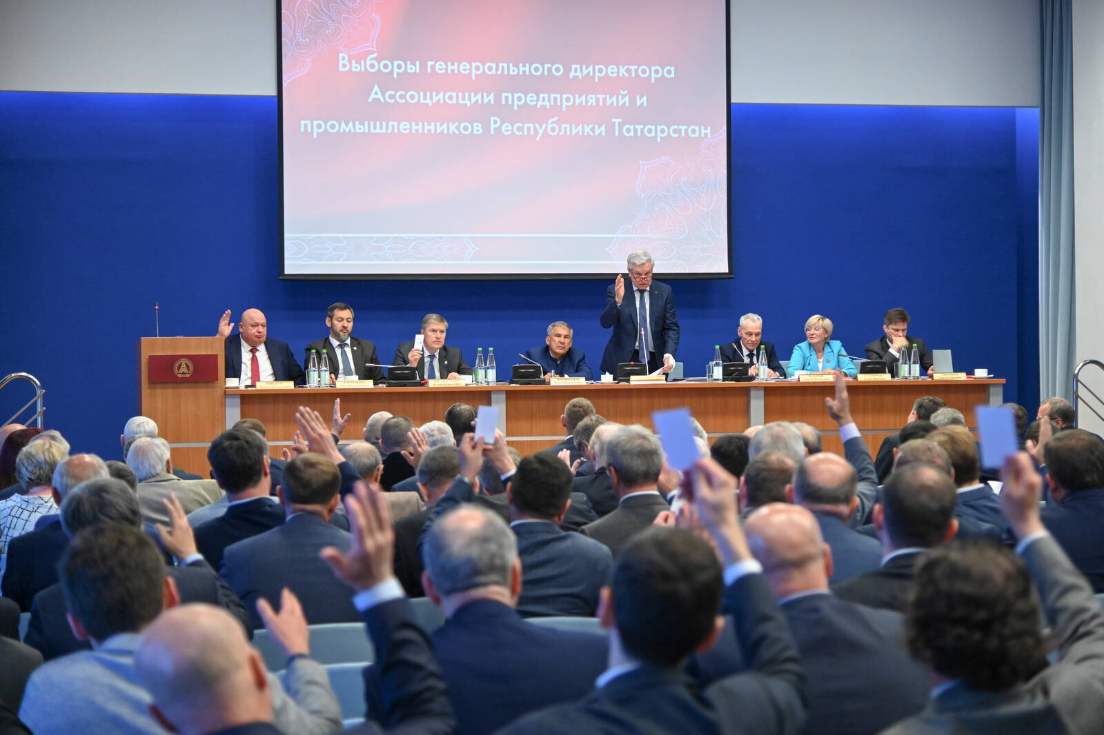 Отчетно-выборное собрание Ассоциации предприятий и промышленников Республики Татарстан. Принимает участие Раис Республики Татарстан Р.Н. Минниханов.