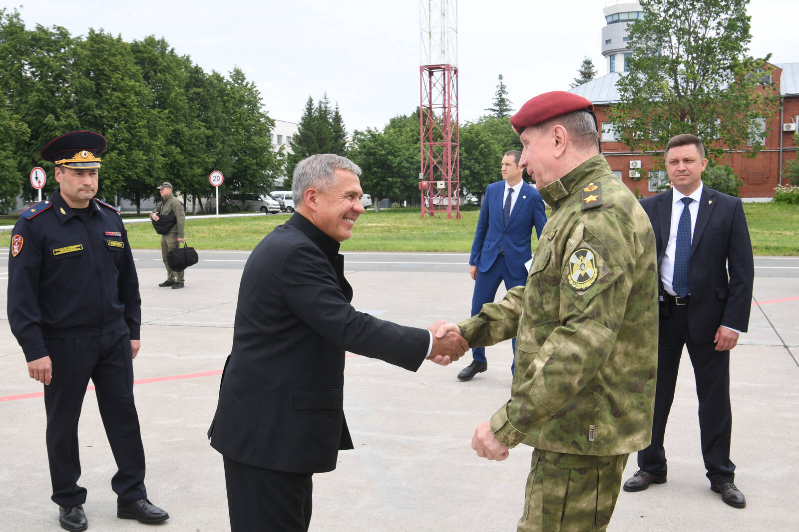 Прибытие директора Федеральной службы войск национальной гвардии Российской Федерации В.В. Золотова. Встречает Раис Республики Татарстан Р.Н. Минниханов.