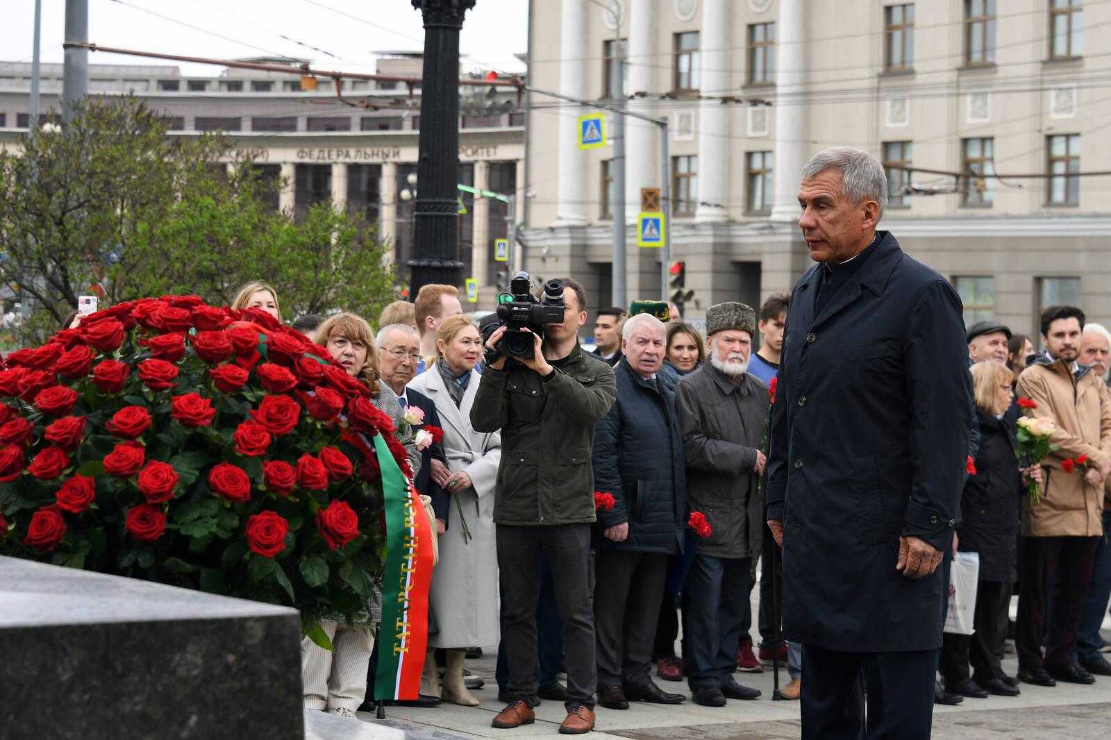 Церемония возложения цветов Раисом Республики Татарстан Р.Н. Миннихановым, Государственным Советником Республики Татарстан М.Ш.Шаймиевым к памятнику классика татарской литературы Габдуллы Тукая