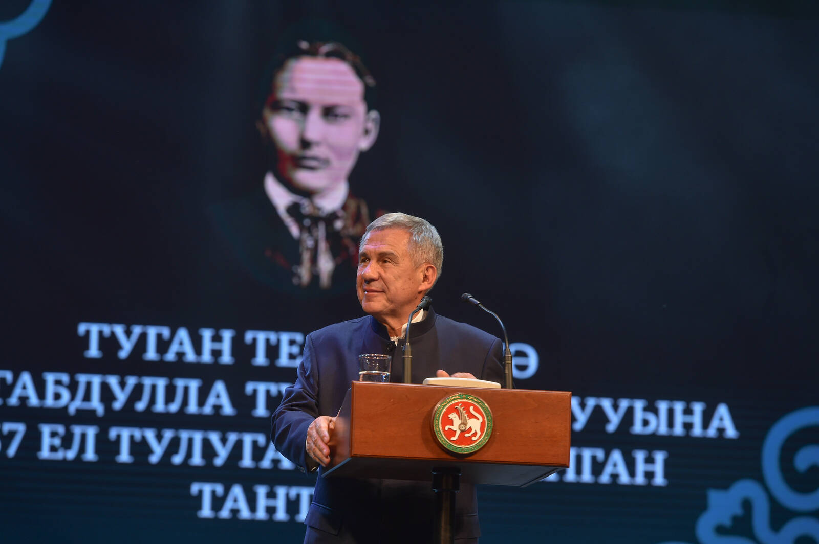 Торжественное мероприятие, приуроченное ко Дню родного языка и 137-й годовщине со дня рождения классика татарской литературы Г. Тукая, церемония вручения Государственной премии Республики Татарстан имени Г. Тукая. Принимает участие Раис Республики Татарстан Р.Н. Минниханов.