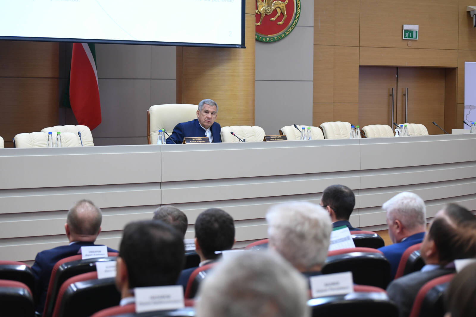 Заседание Совета директоров АО "Татнефтехиминвест-холдинг". Проводит Председатель Совета директоров, Раис Республики Татарстан Р.Н. Минниханов.
