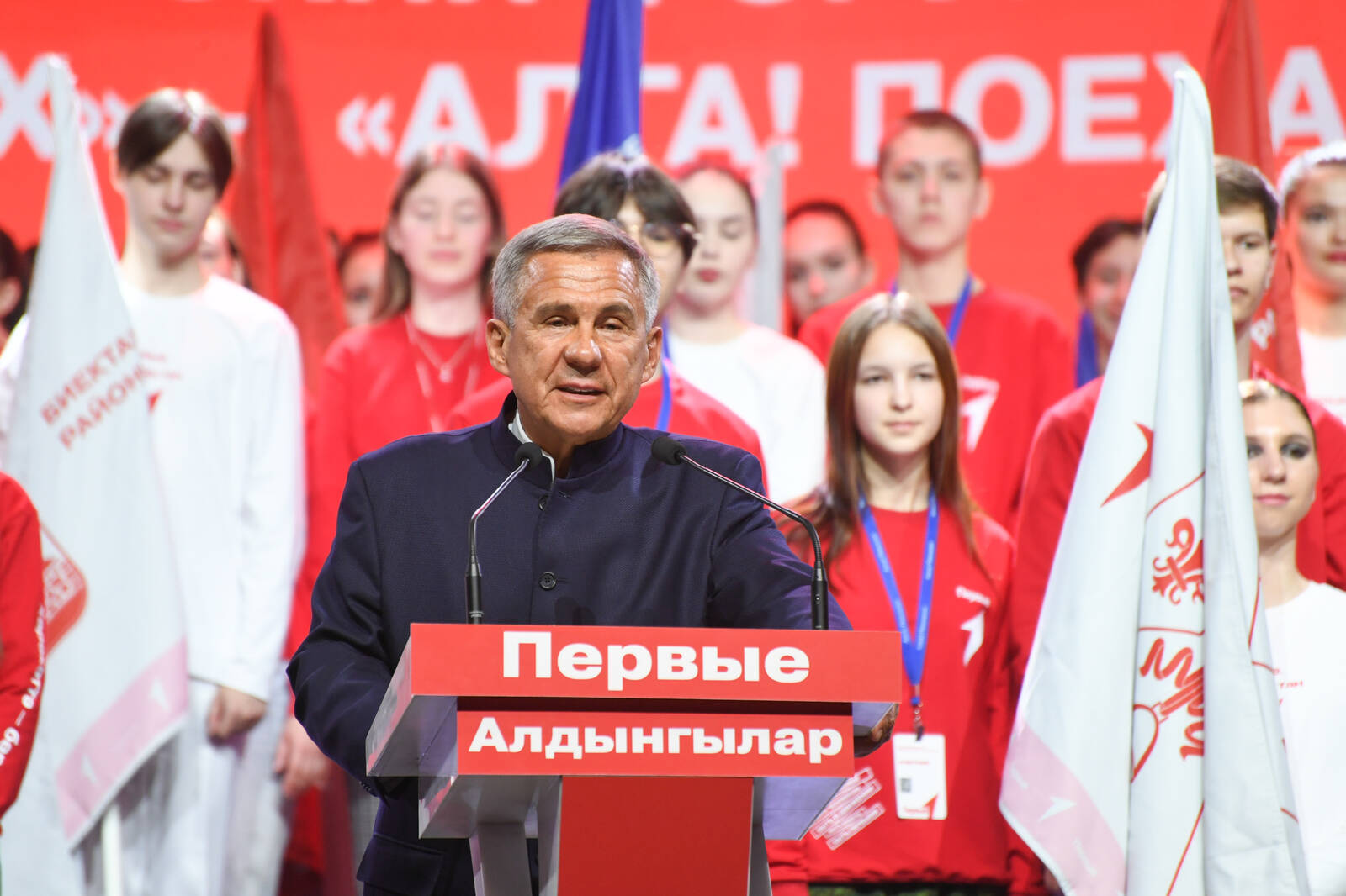Церемония открытия Республиканского форума "Алга! Поехали!" Общероссийского общественно-государственного движения детей и молодежи "Движение первых" Республики Татарстан. Принимают участие Раис Республики Татарстан Р.Н. Минниханов, генеральный директор АНО "Агентство стратегических инициатив по продвижению новых проектов" С.В. Чупшева