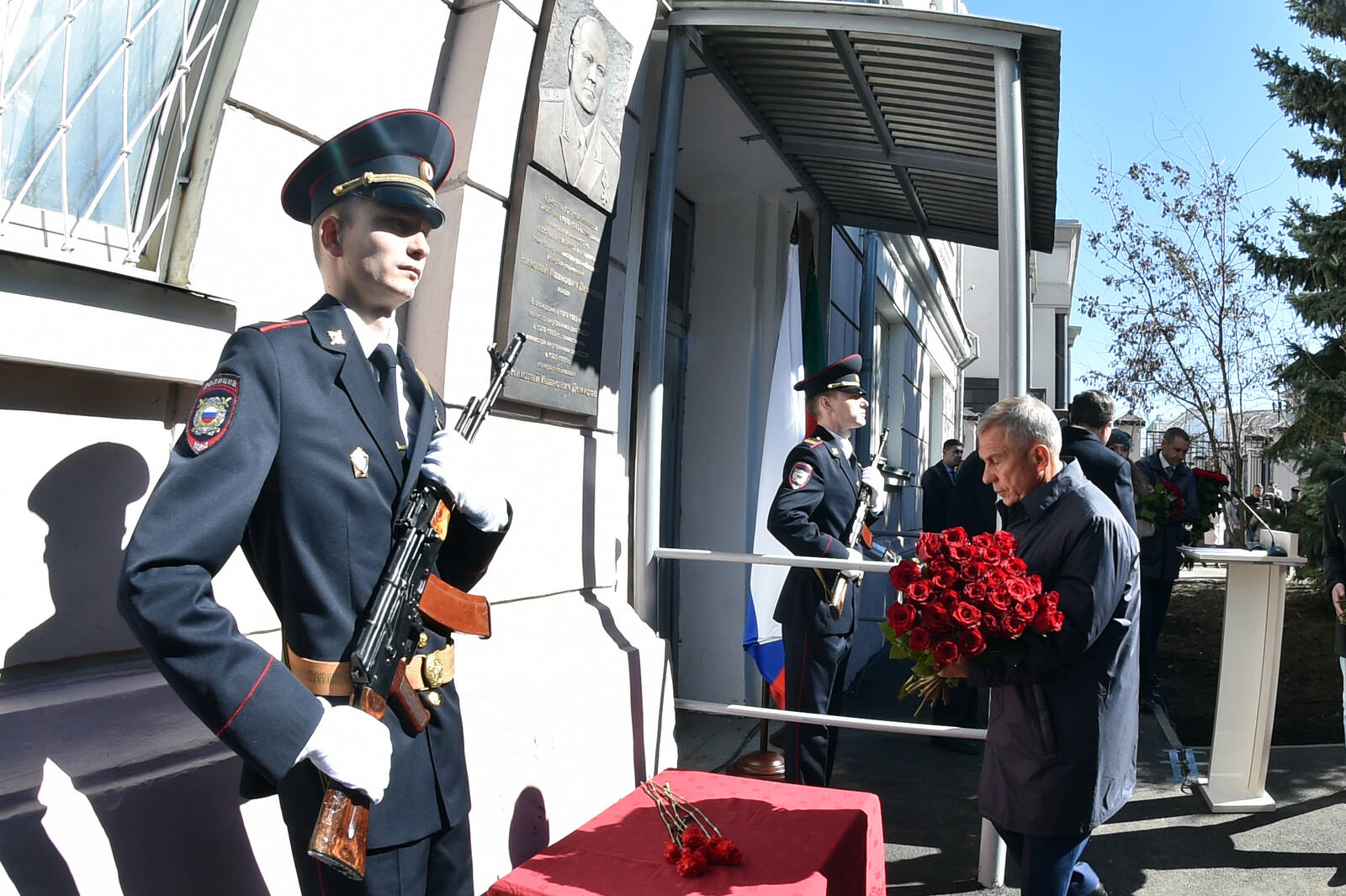 Торжественная церемония открытия мемориальной доски генерал-лейтенанту внутренней службы Николаю Ивановичу Демидову. Принимает участие Раис Республики Татарстан Р.Н. Минниханов.
