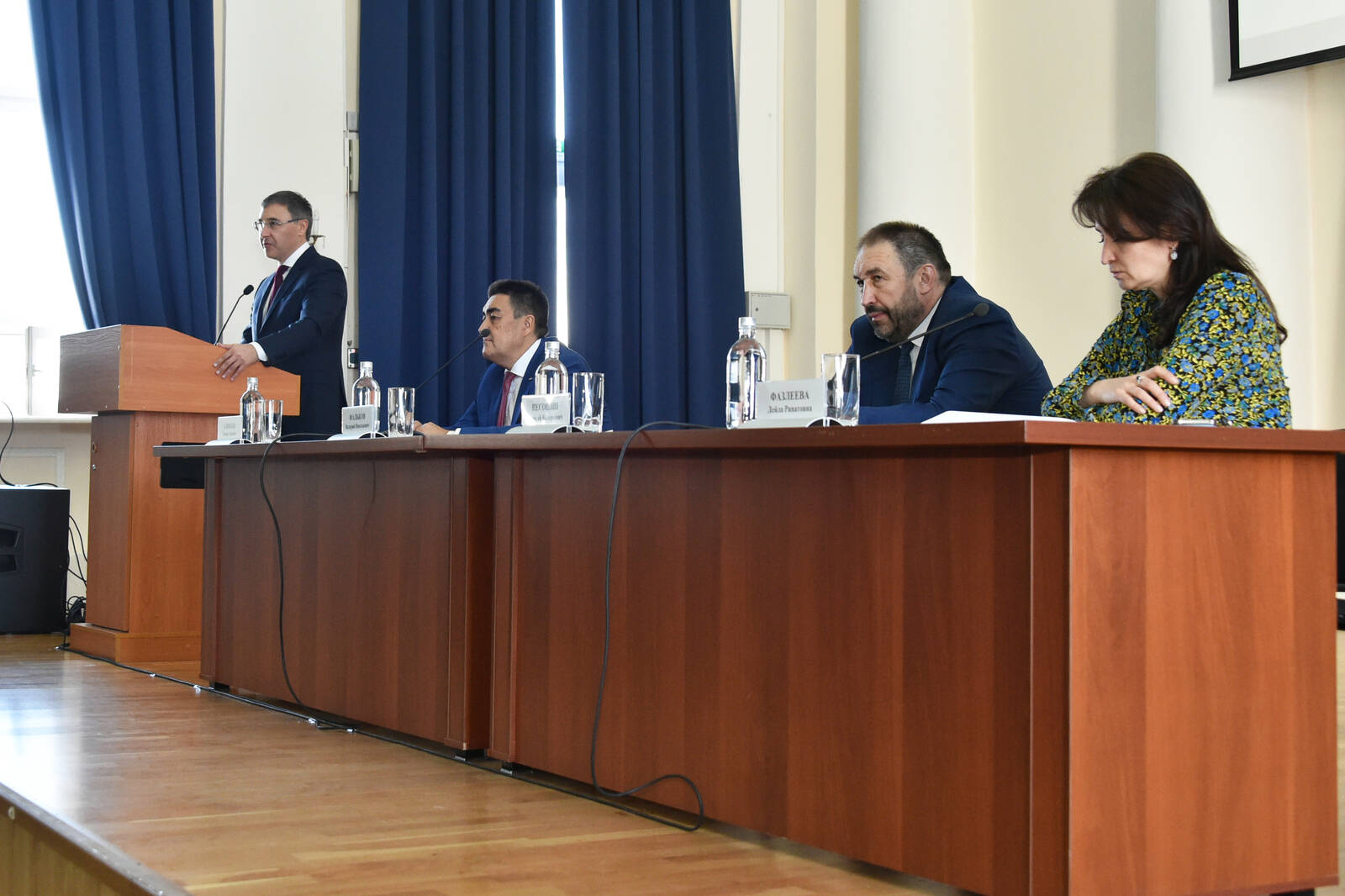 Представление ректора КНИТУ-КАИ. Принимают участие министр науки и высшего образования РФ Валерий Фальков, Премьер-министр Татарстана Алексей Песошин, заместитель Премьер-министра РТ Лейла Фазлеева.