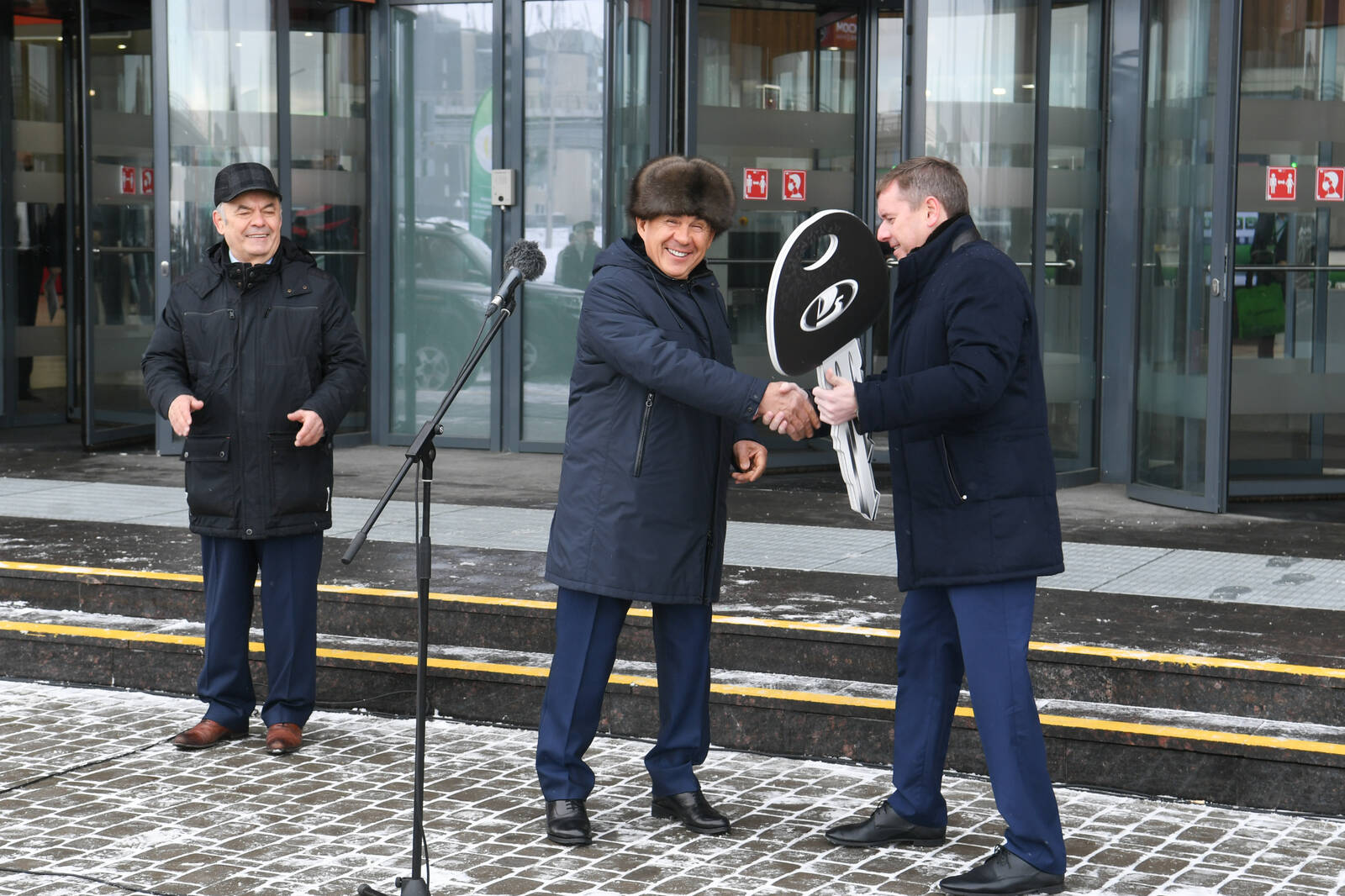 Вручение автомобилей Управлениям сельского хозяйства и продовольствия в муниципальных районах Республики Татарстан. Принимает участие Раис Республики Татарстан Р.Н. Минниханов.