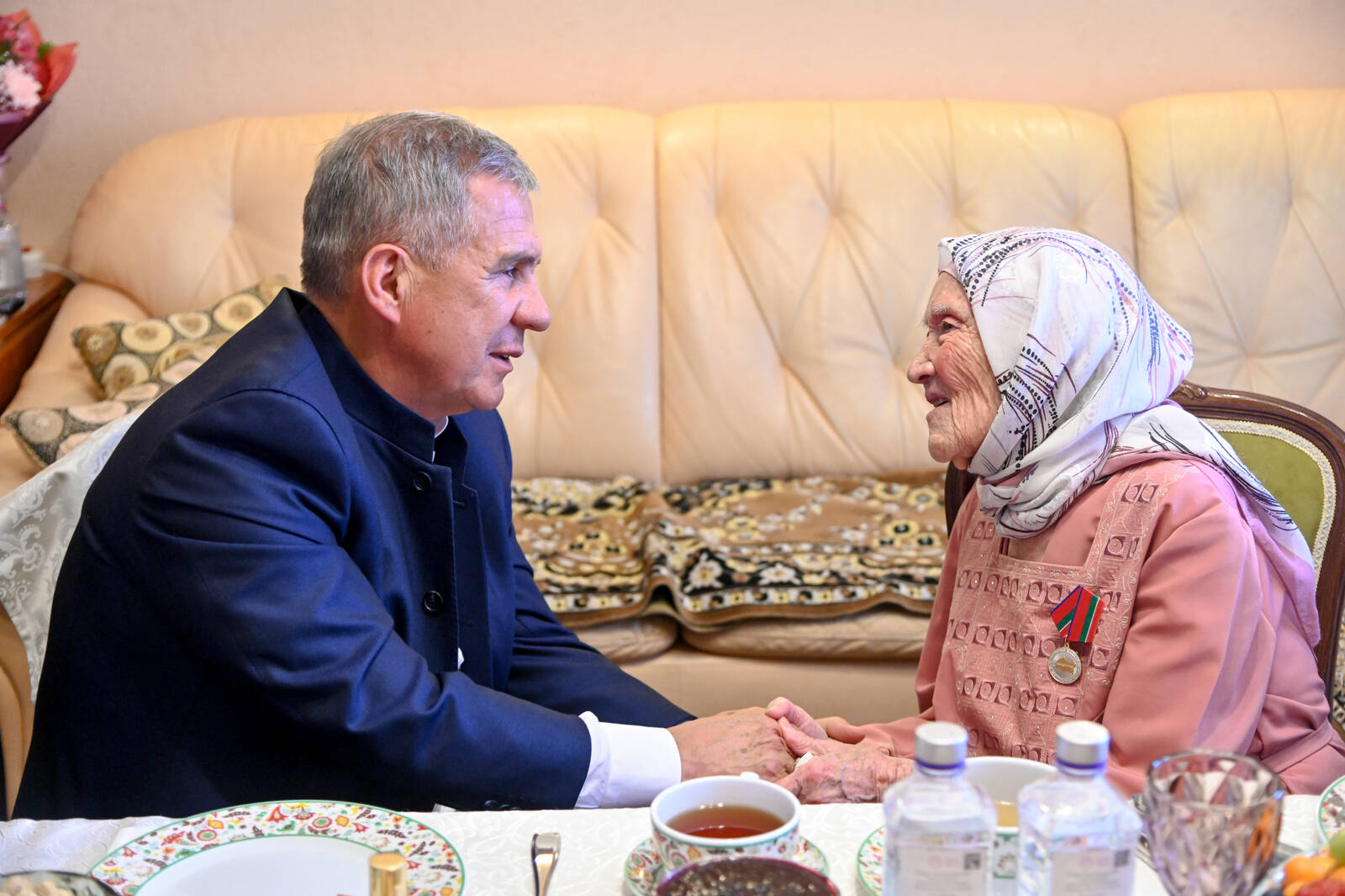Чествование Раисом Республики Татарстан Р.Н. Миннихановым ветерана Великой Отечественной войны Нурании Мухаметовны Газеевой в связи со 100-летним юбилеем