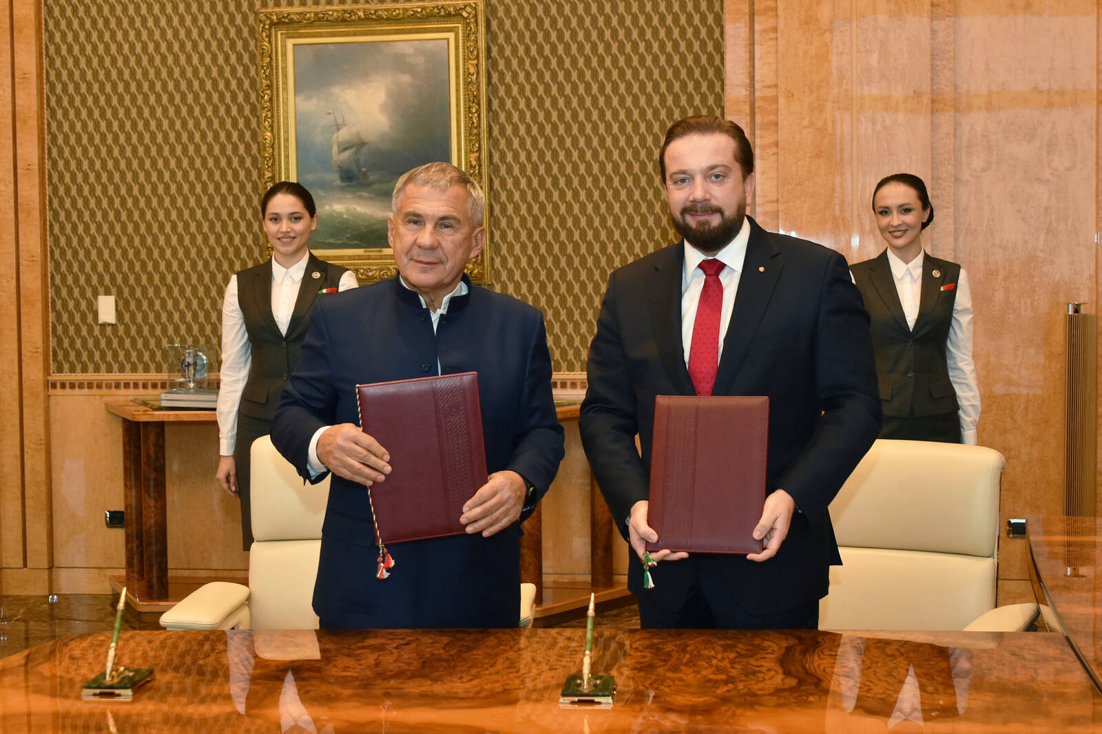 Встреча Президента Татарстана Рустама Минниханова с председателем правления, директором Фонда Росконгресс Александром Стуглевым.