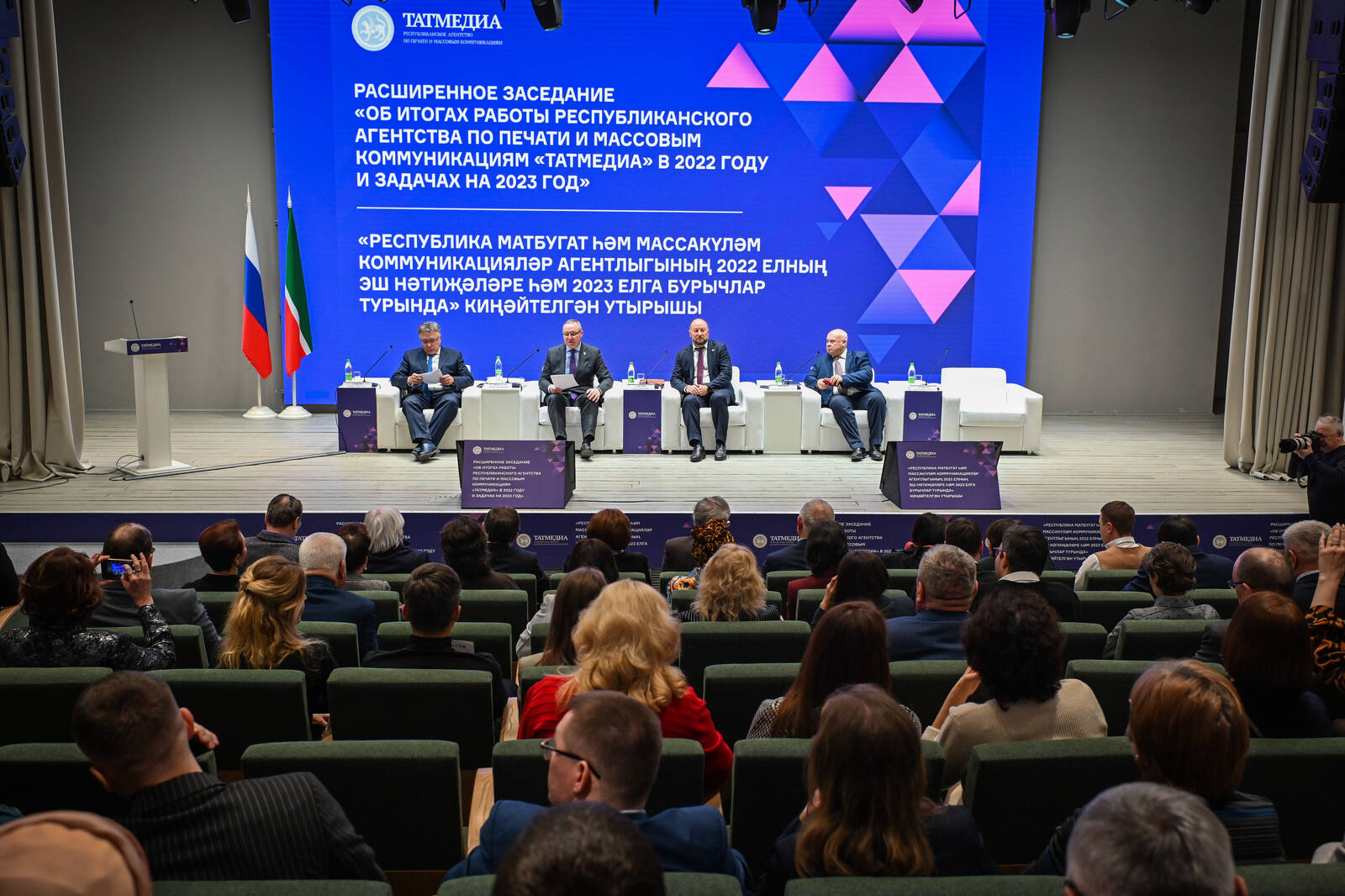 Расширенное заседание Республиканского агентства по печати и массовым коммуникациям "Татмедиа" "Об итогах работы в 2022 году и задачах на 2023 год". Принимает участие Руководитель Администрации Президента Республики Татарстан А.А.Сафаров.