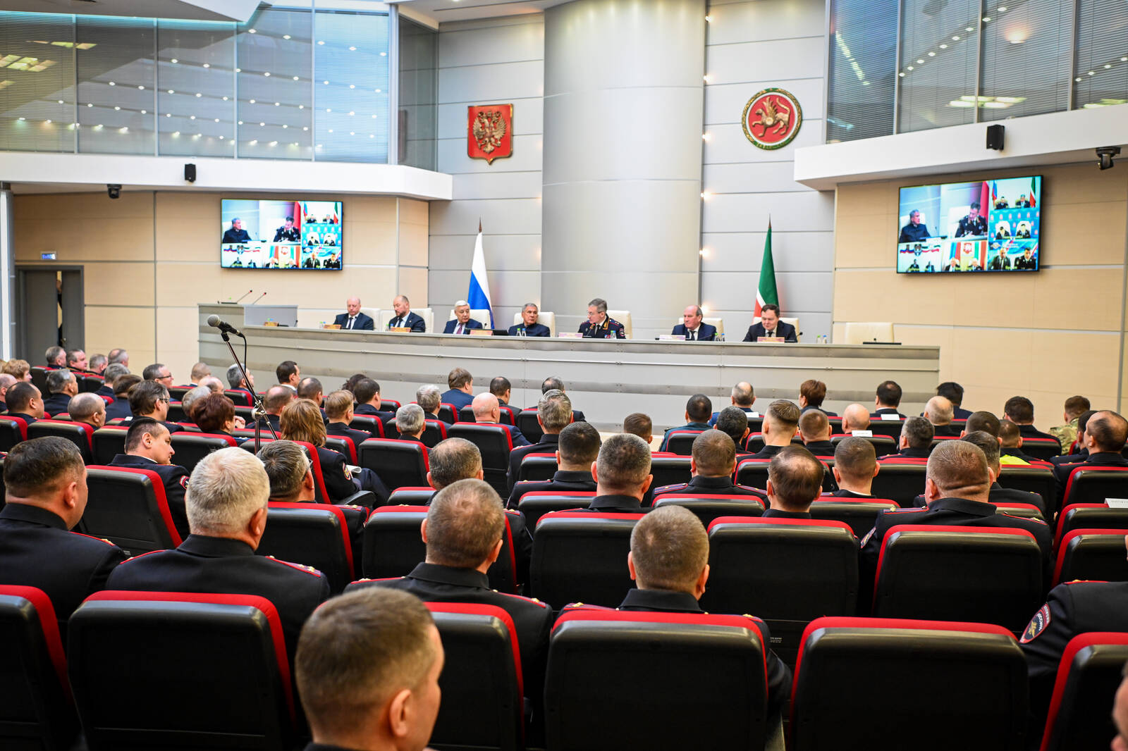 Расширенное заседание коллегии Министерства внутренних дел по Республике Татарстан "Об итогах оперативно-служебной деятельности органов и подразделений внутренних дел за 2022 год и задачах на последующий период". Принимает участие Президент Республики Татарстан Р.Н. Минниханов.