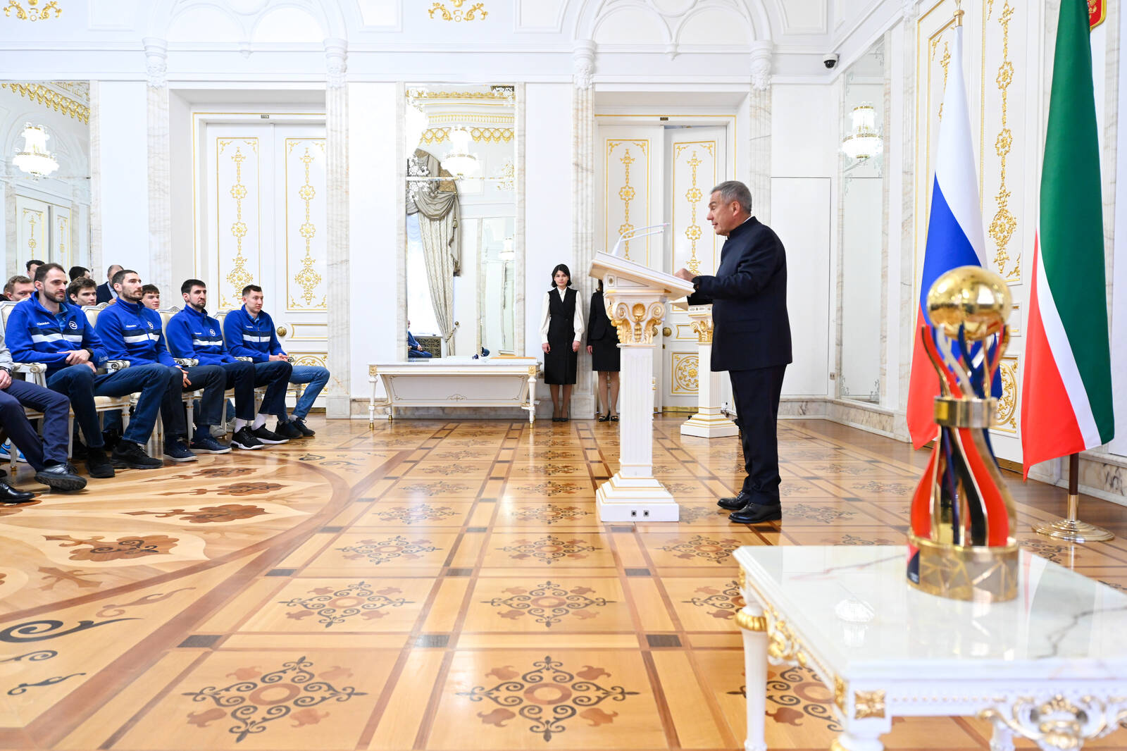 Церемония чествования мужского волейбольного клуба "Зенит-Казань" - обладателя Кубка России по волейболу 2022 года. Принимает участие Президент Республики Татарстан Р.Н. Минниханов.