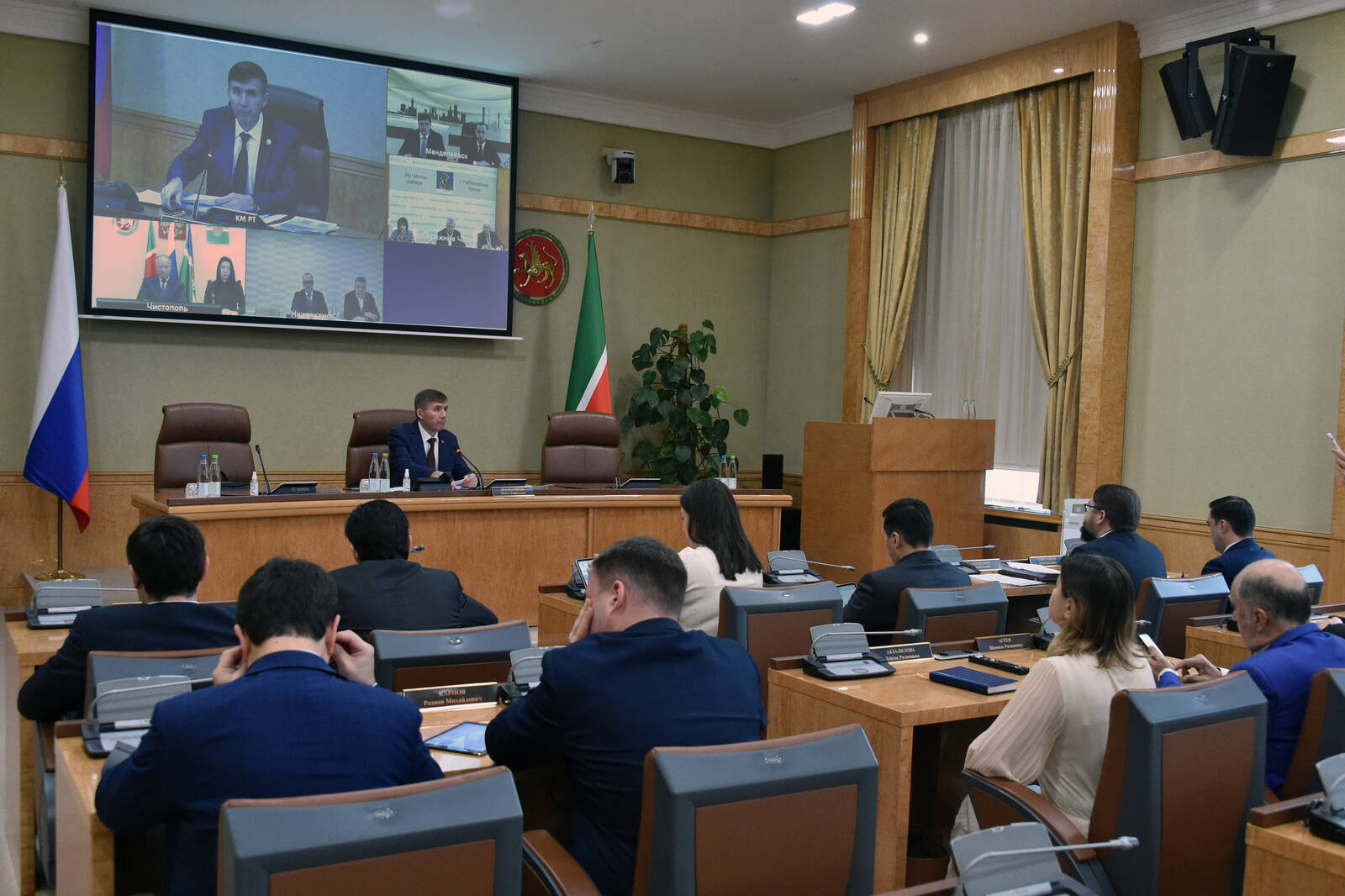Республиканское совещание в режиме видеоконференции. Проводит Премьер-министр Республики Татарстан А.В. Песошин.