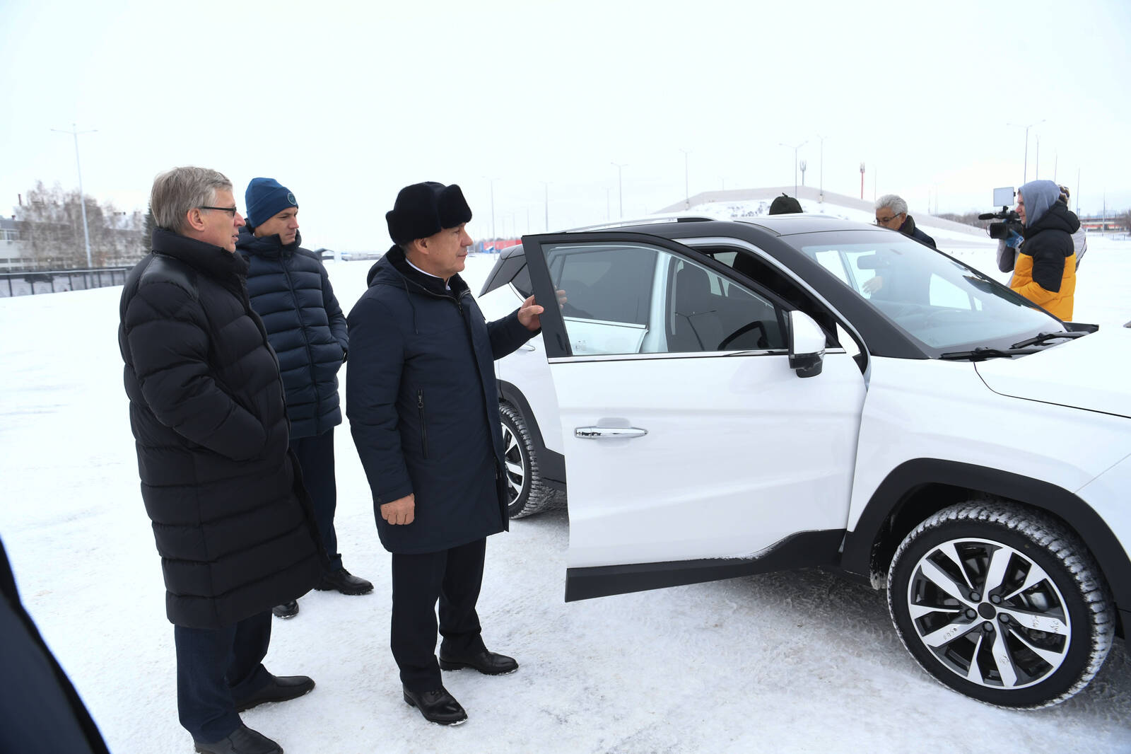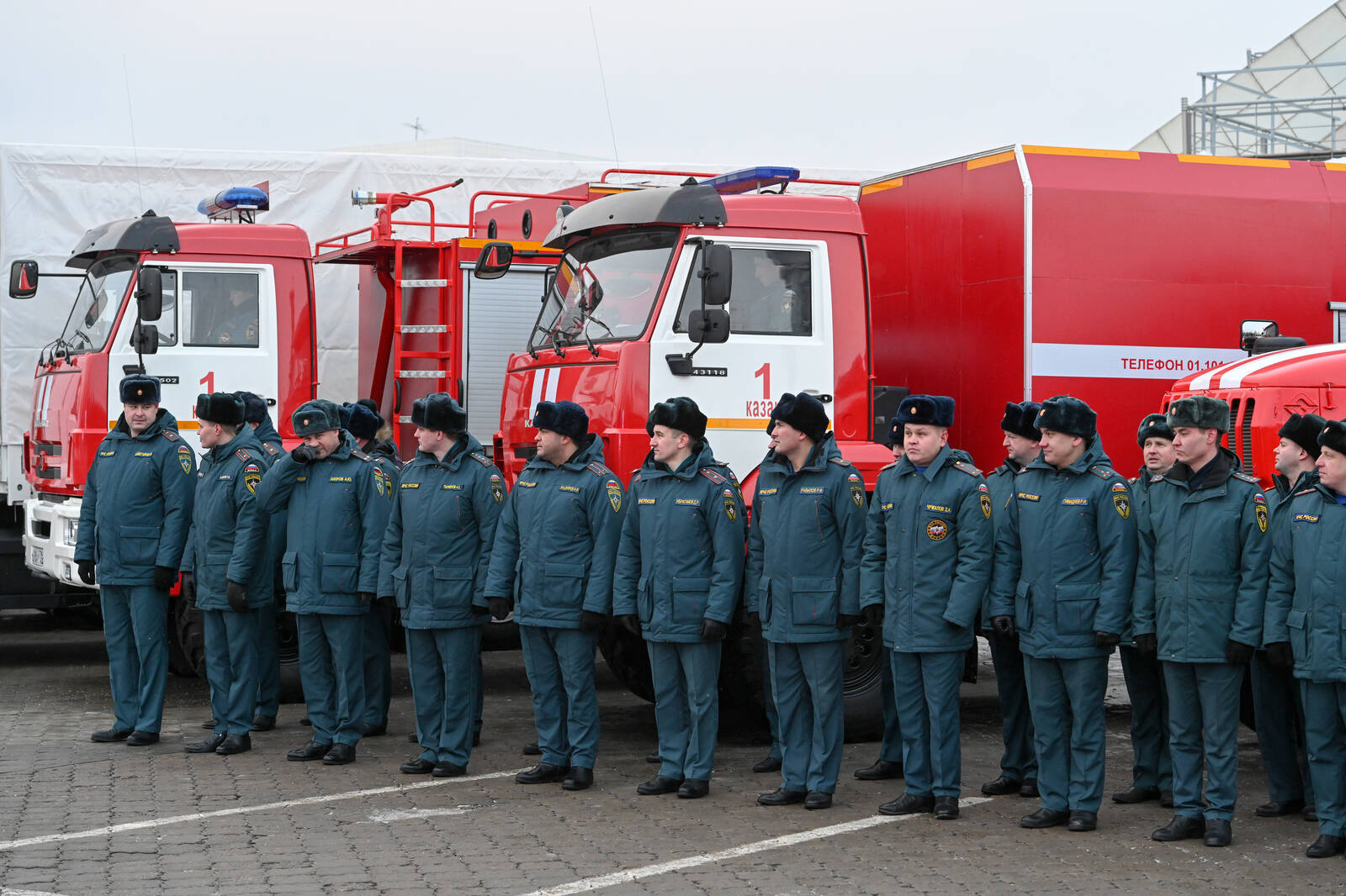 Церемония вручения служебных автомобилей подразделениям МЧС. Принимают участие Министр Российской Федерации по делам гражданской обороны, чрезвычайным ситуациям и ликвидации последствий стихийных бедствий Александр Вячеславович Куренков, Президент Республики Татарстан Р.Н. Минниханов.