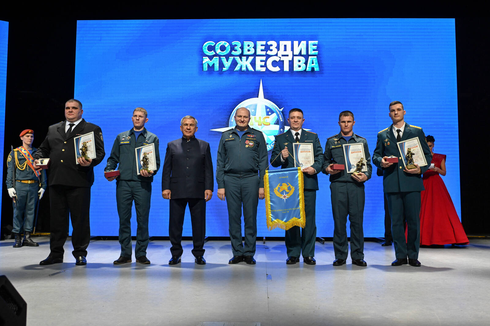 Торжественная церемония награждения победителей XIV Всероссийского фестиваля по тематике безопасности и спасения людей "Созвездие Мужества". Принимают участие Министр Российской Федерации по делам гражданской обороны, чрезвычайным ситуациям и ликвидации последствий стихийных бедствий А.В. Куренков, Президент Республики Татарстан Р.Н. Минниханов.