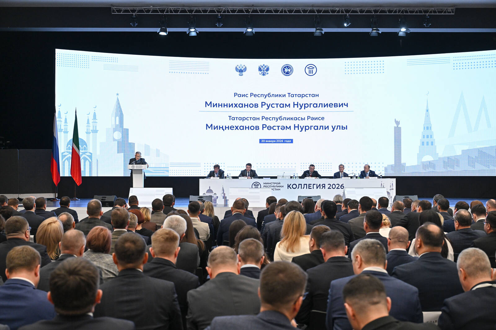 Расширенное заседание коллегии Министерства строительства, архитектуры и жилищно-коммунального хозяйства Республики Татарстан по итогам работы отрасли за 2025 год и задачам на 2026 год. Принимают участие Министр строительства и жилищно-коммунального хозяйства Российской Федерации И.Э.Файзуллин, Раис Республики Татарстан Р.Н.Минниханов.