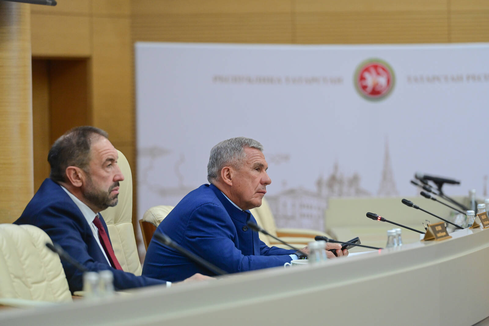 Заседание Совета директоров АО "Татнефтехиминвест-холдинг". Проводит председатель Совета директоров, Раис Республики Татарстан Р.Н.Минниханов.