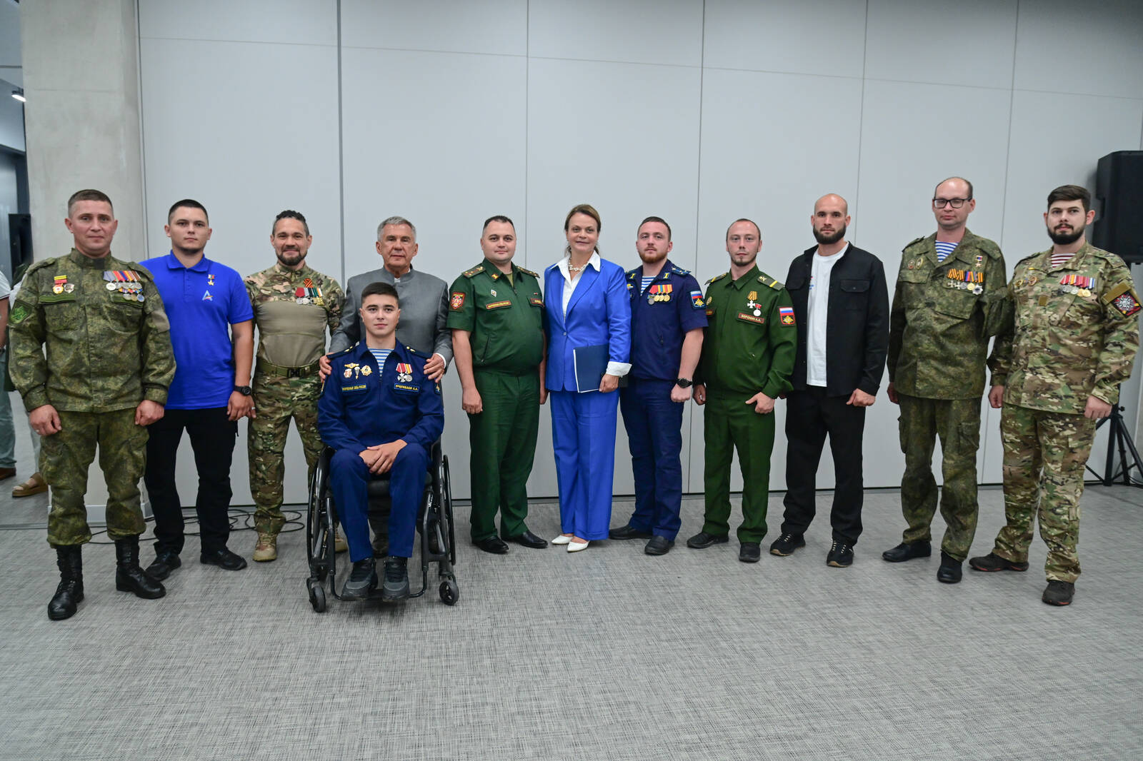 Встреча Раиса Республики Татарстан Р.Н.Минниханова, Статс-секретаря – заместителя Министра обороны Российской Федерации, Председателя Государственного фонда поддержки участников специальной военной операции "Защитники Отечества" А.Е.Цивилевой с ветеранами специальной военной операции - участниками Чемпионата по профессиональному мастерству "Абилимпикс"