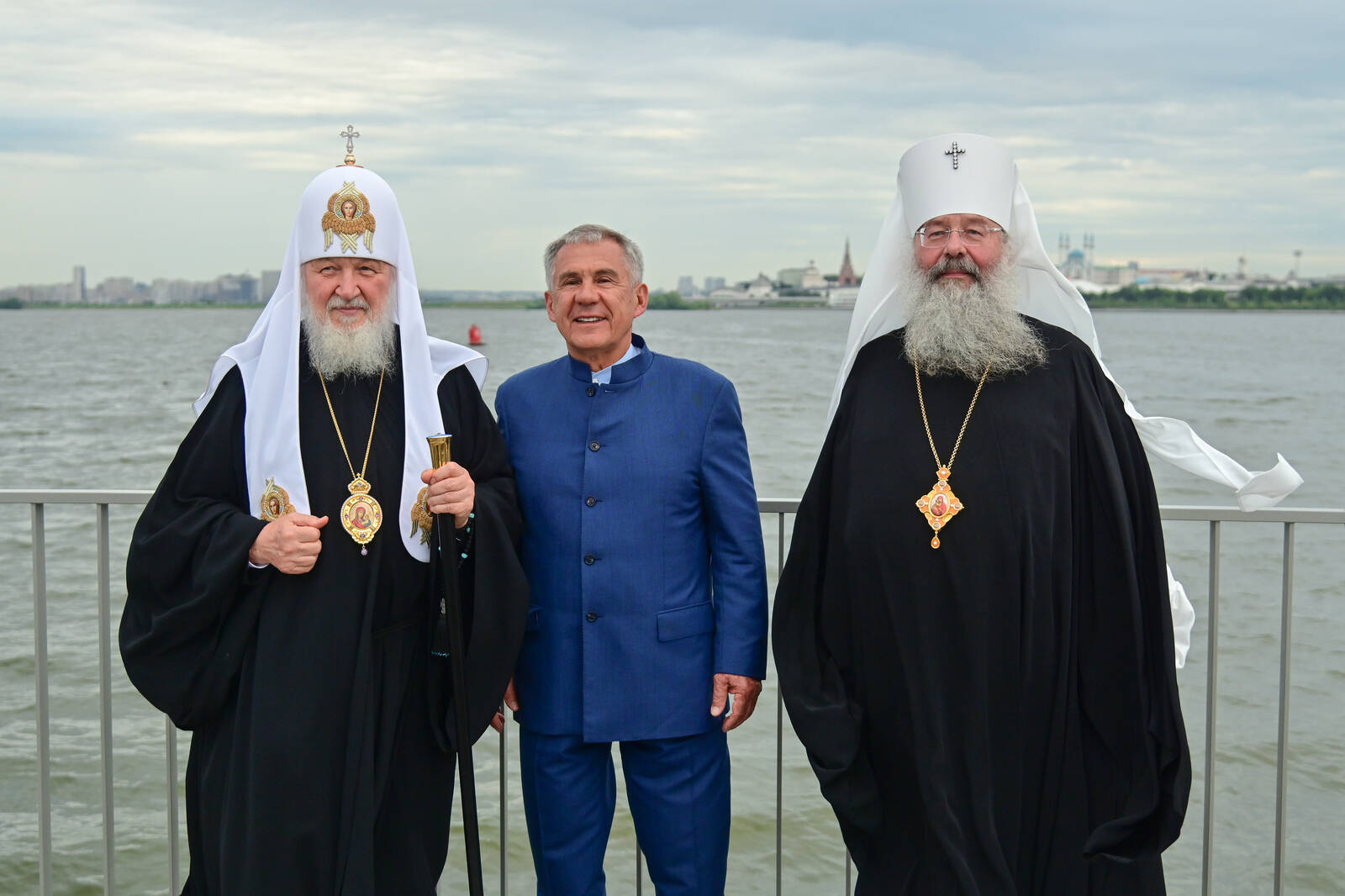 Посещение Раисом Татарстана Рустамом Миннихановым и Святейшим Патриархом Московским и всея Руси Кириллом храма-памятника на реке Казанке.