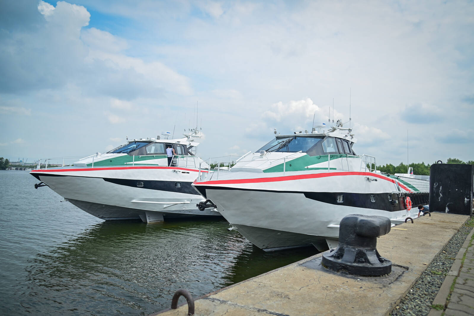 Осмотр Заместителем Председателя Правительства Российской Федерации В.Г.Савельевым и Раисом Республики Татарстан Р.Н.Миннихановым скоростного пассажирского судна на подводных крыльях проекта «Метеор-2020»