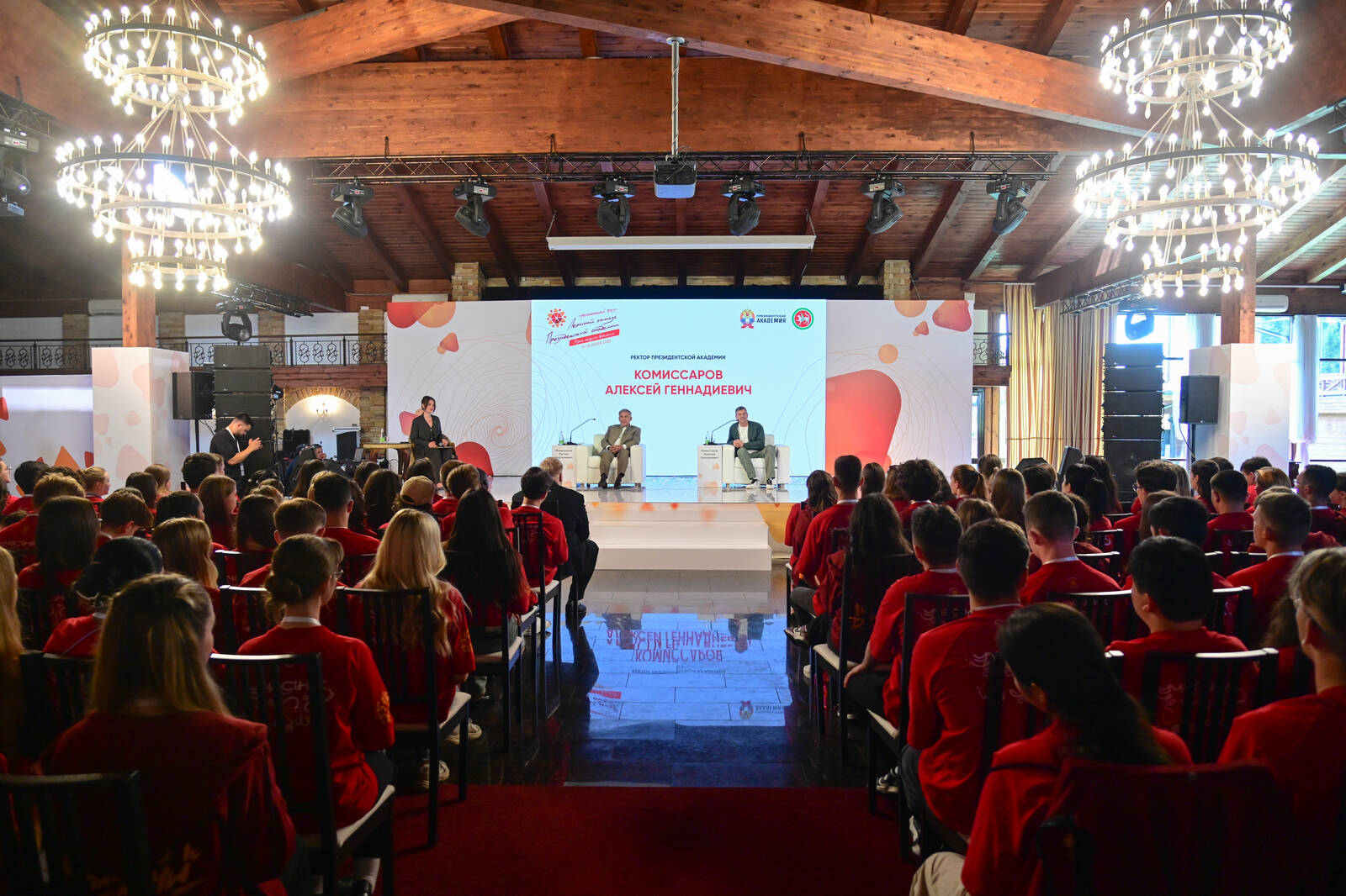 Пленарная сессия "От ценностей к созиданию: роль молодежи в системных изменениях" образовательного форума "XIII Международный летний кампус Президентской академии". Принимают участие Раис Республики Татарстан Р.Н.Минниханов, ректор Российской академии народного хозяйства и государственной службы при Президенте Российской Федерации Алексей Геннадиевич Комиссаров.