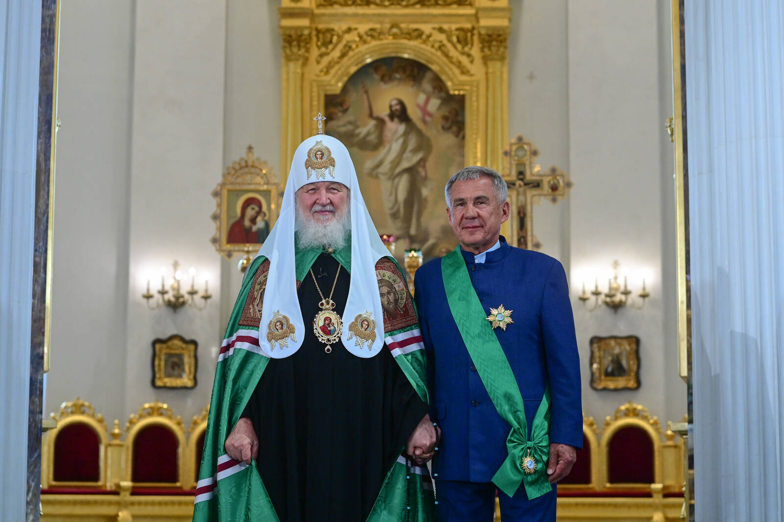 Мероприятие в Соборе Казанской иконы Божией Матери с участием Святейшего Патриарха Московского и всея Руси Кирилла и Раиса Татарстана Рустама Минниханова.
