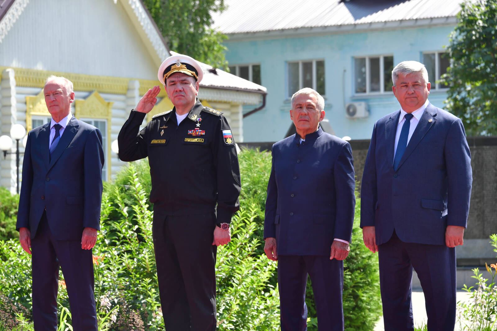 Торжественная церемония вручения АО "Зеленодольский завод им.Горького" Ордена "За доблестный труд". Принимают участие помощник Президента Российской Федерации Николай Платонович Патрушев, Раис Республики Татарстан Р.Н.Минниханов.