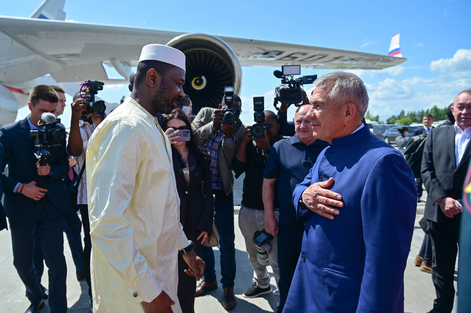 Прибытие Президента переходного периода Республики Мали Его Превосходительства господина Ассими Гойты. Встречает Раис Республики Татарстан Р.Н.Минниханов.