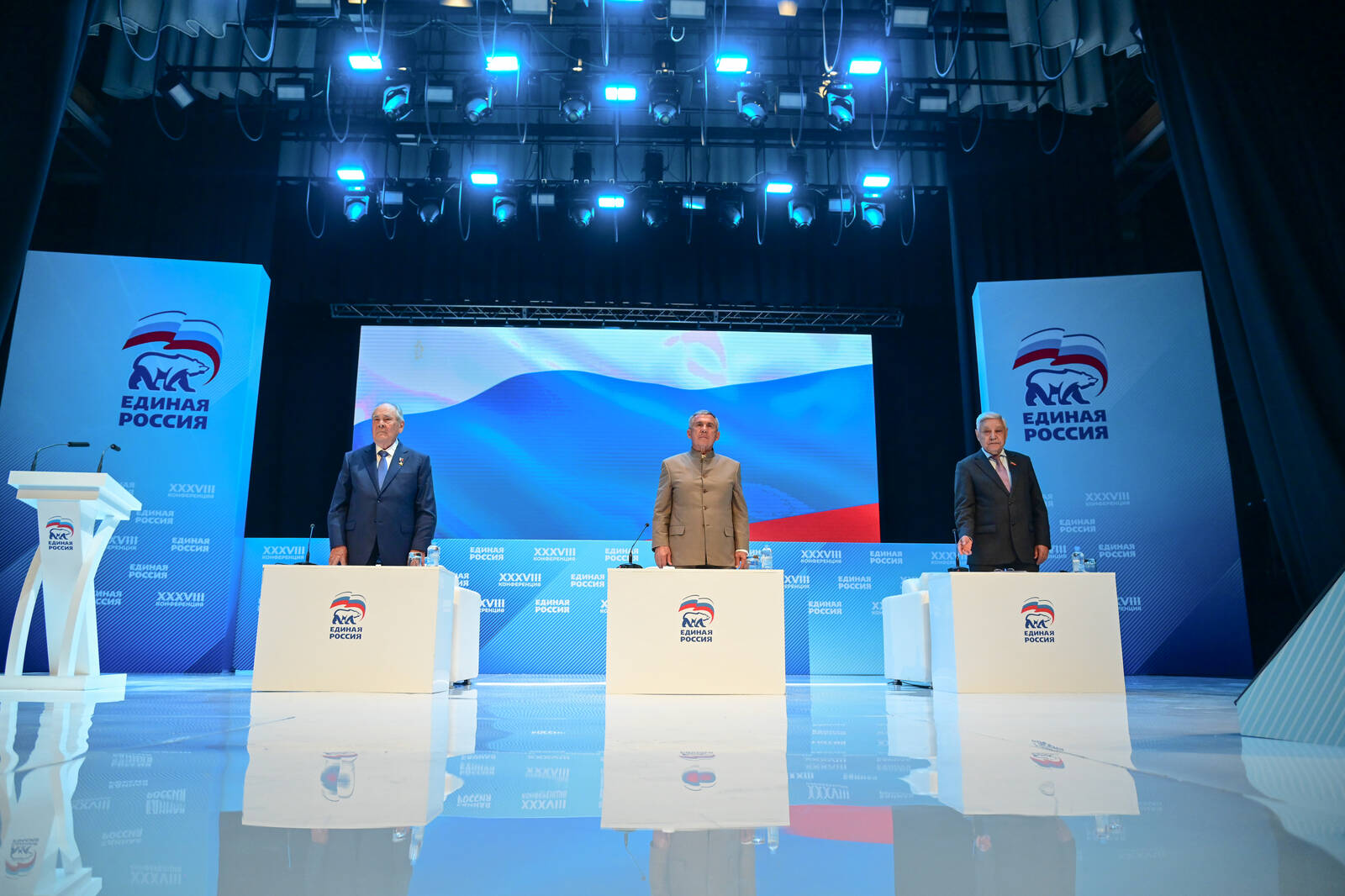 Конференция Татарстанского Регионального отделения Всероссийской политической партии «Единая Россия». Принимают участие Раис Республики Татарстан Р.Н.Минниханов и Государственный Советник Республики Татарстан М.Ш.Шаймиев.