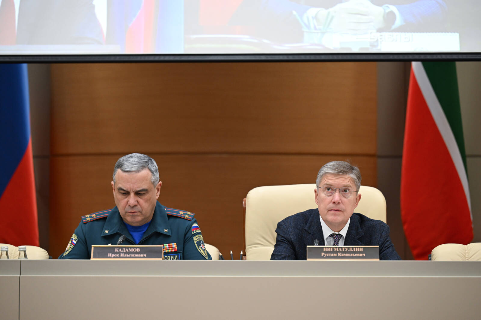 Заседание Комиссии по предупреждению и ликвидации чрезвычайных ситуаций и обеспечению пожарной безопасности Республики Татарстан «О дополнительных мерах по обеспечению пожарной безопасности населения в период проведения новогодних и рождественских праздников». Проводит первый заместитель Премьер-министра Республики Татарстан Р.К.Нигматуллин.