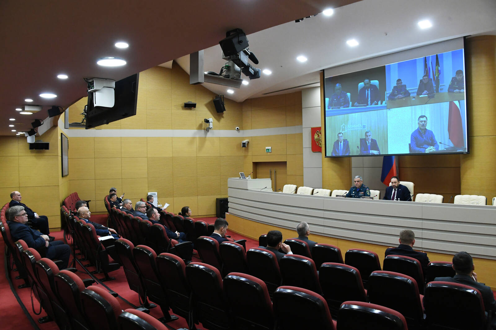 Заседание Комиссии по предупреждению и ликвидации чрезвычайных ситуаций и обеспечению пожарной безопасности РТ. Проводит первый заместитель председателя Комиссии, Премьер-министр Республики Татарстан Алексей Песошин.