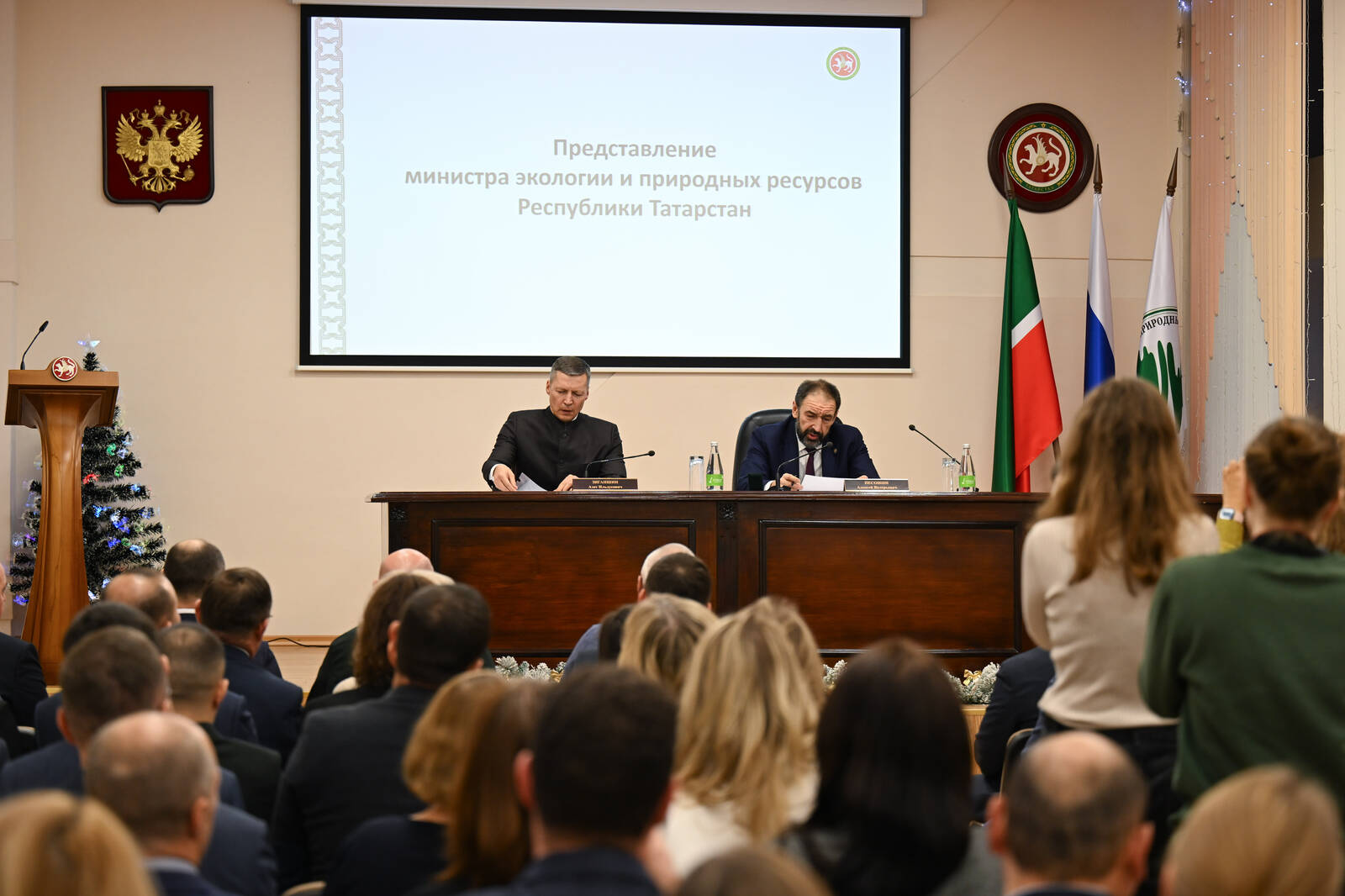 Представление коллективу вновь назначенного Министра экологии и природных ресурсов Республики Татарстан. Принимает участие Премьер-министр Республики Татарстан А.В.Песошин.