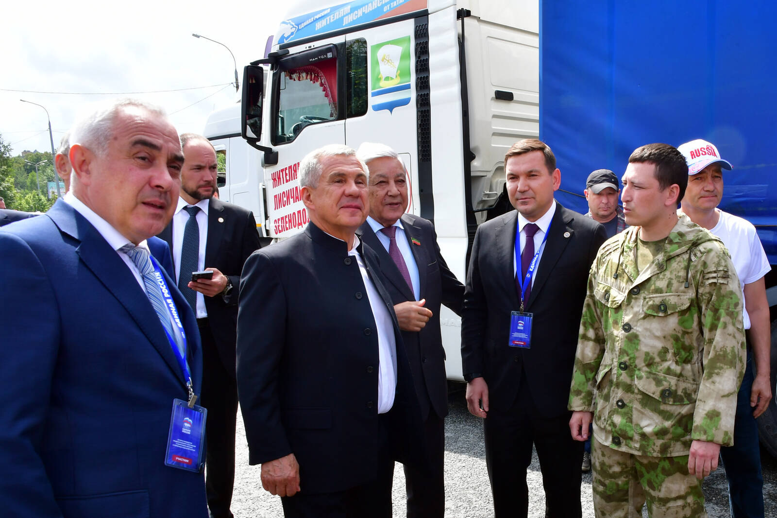 Отправка гуманитарного груза воинским частям, участвующим в специальной военной операции и новым регионам Российской Федерации. Принимает участие Раис Республики Татарстан Р.Н.Минниханов.