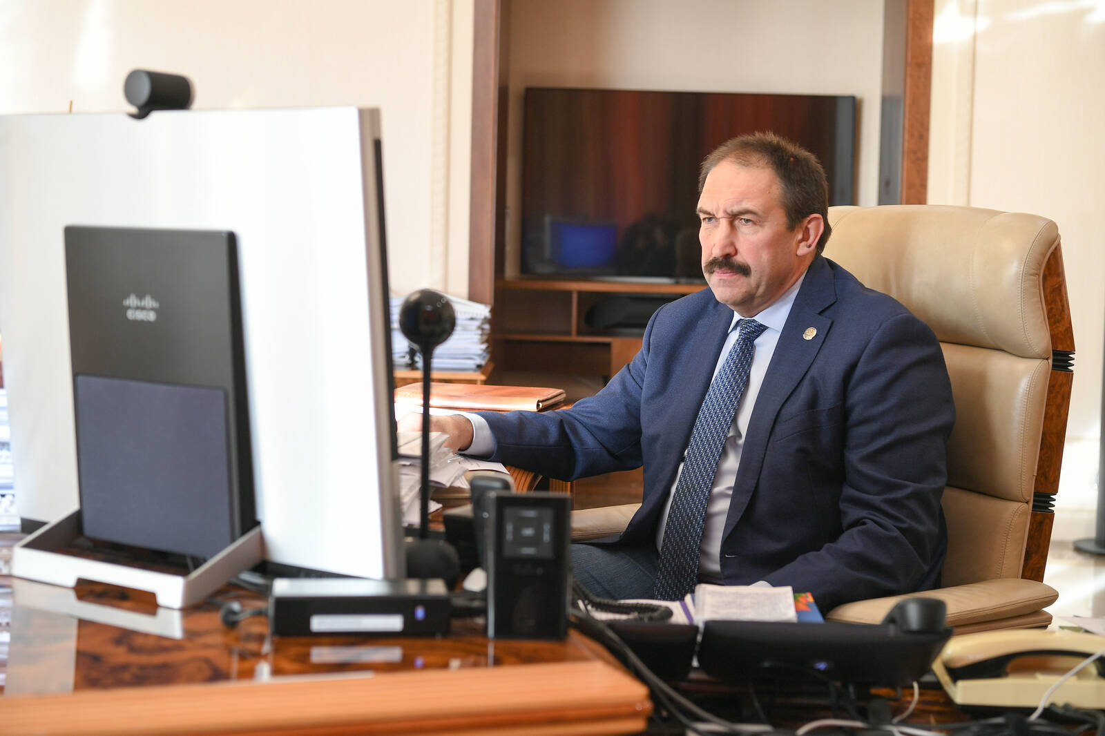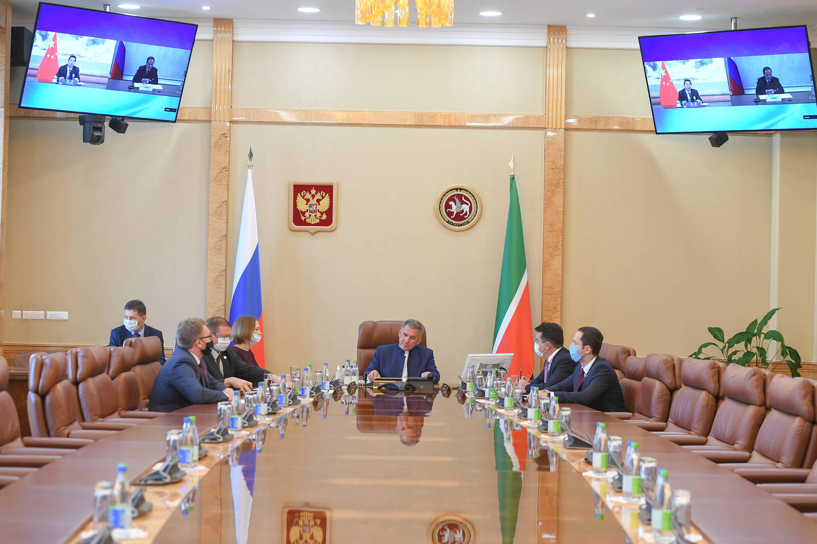 Встреча сопредседателей Совета по межрегиональному сотрудничеству России и Китая в формате "Волга-Янцзы" в режиме видеоконференции. Принимает участие Президент Республики Татарстан Р.Н. Минниханов.