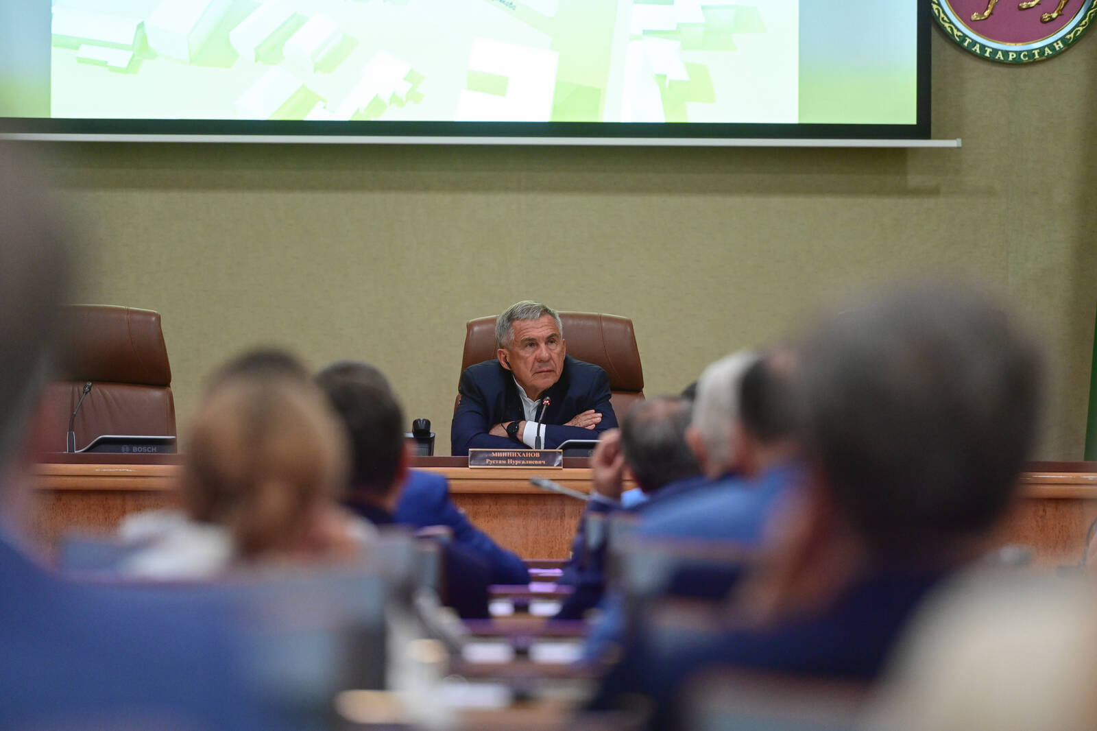 Совещание по вопросу подготовки и проведения Международного конкурса молодых исполнителей популярной музыки «Новая волна» в Казани в 2025 году. Принимает участие Раис Републики Татарстан Р.Н.Минниханов.