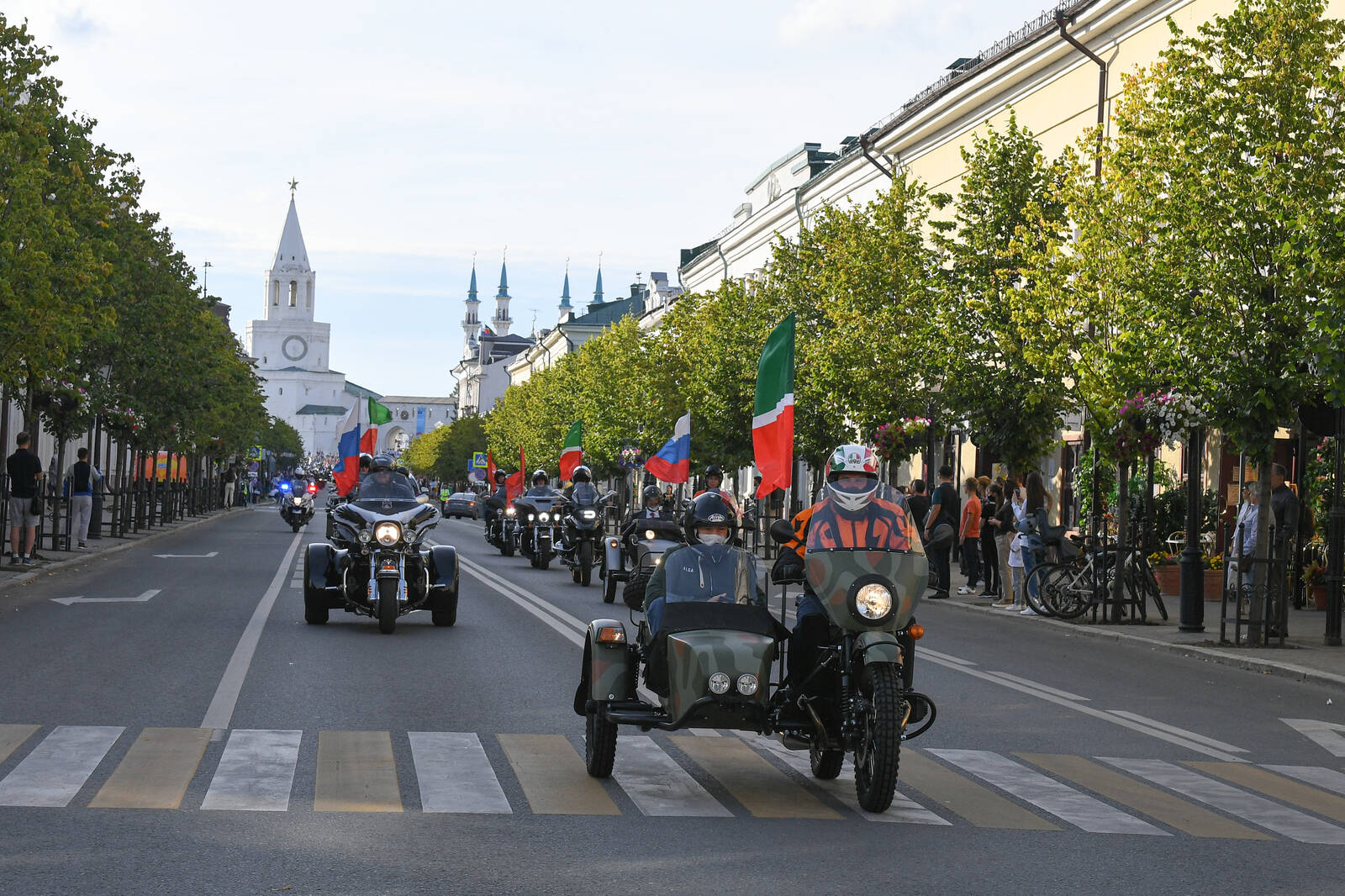 Мотопробег, посвящённый 100-летию ТАССР. Принимает участие Президентом Республики Татарстан Р.Н. Минниханов.