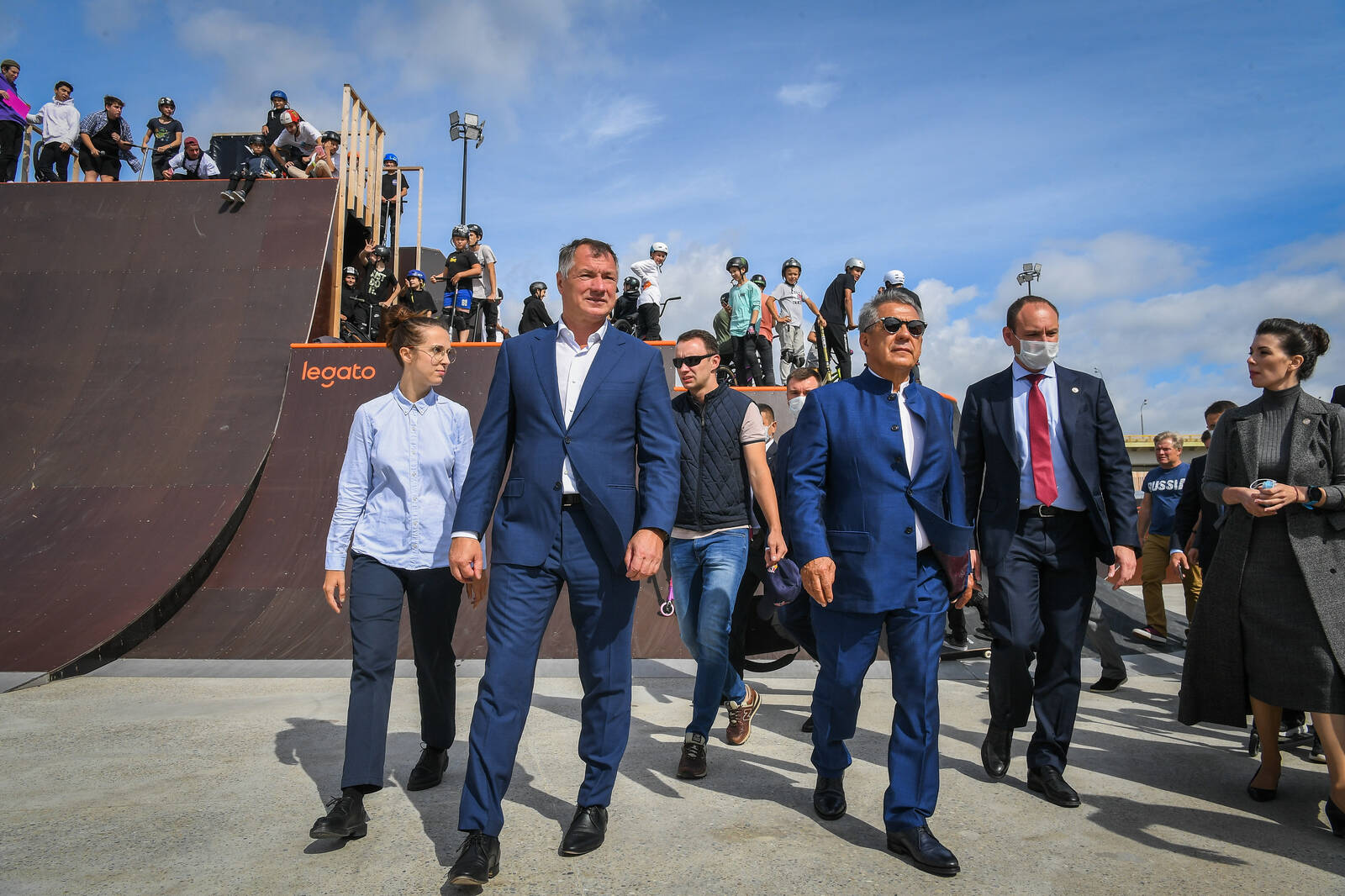 Посещение нового экстрим-парк «Урам». Принимают участие Президент Республики Татарстан Р.Н. Минниханов и заместитель Председателя Правительства России М.Ш Хуснуллин