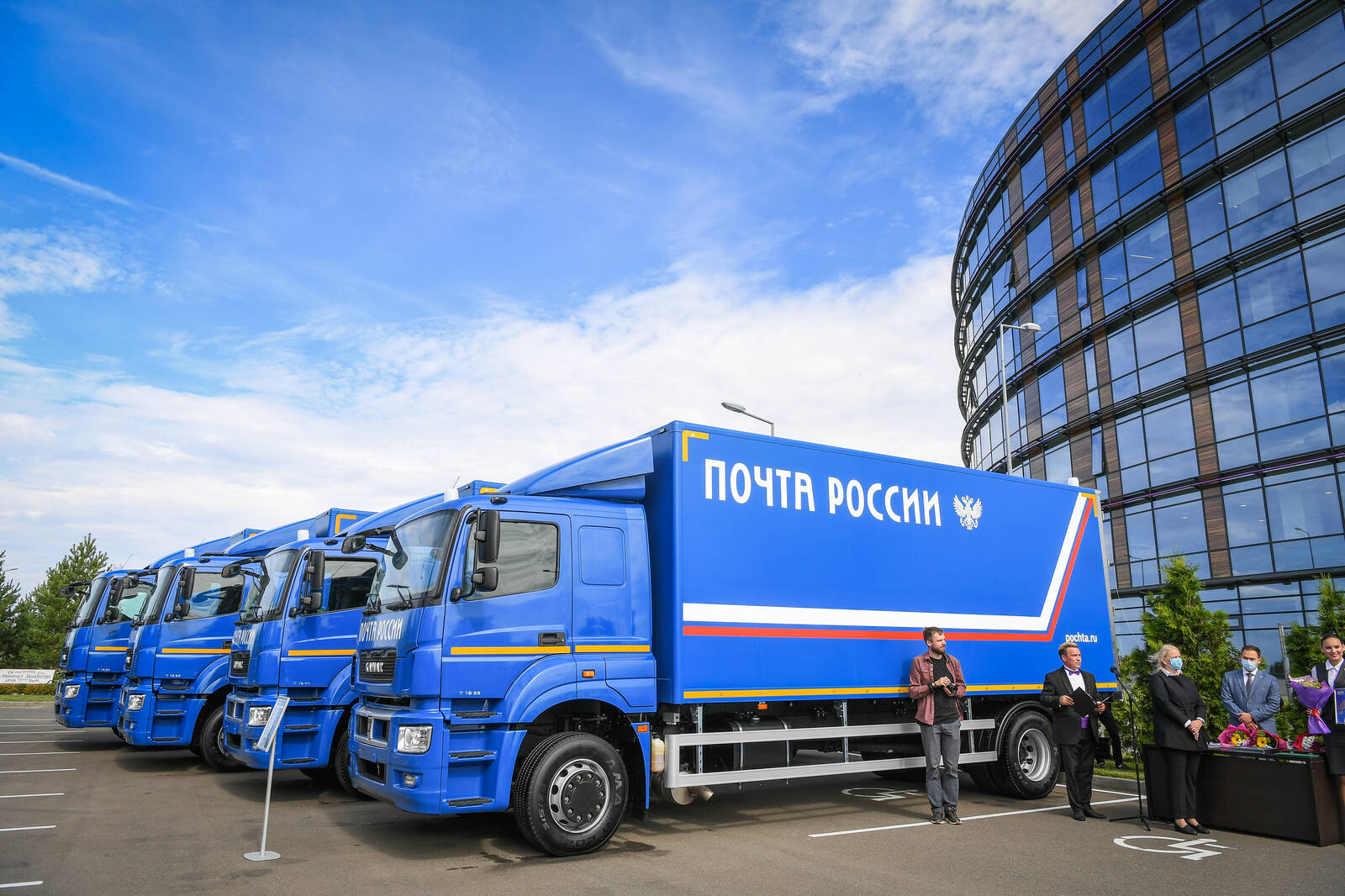 Торжественная церемония вручения автомобилей "КАМАЗ" АО "Почта России". Принимают участие Президент Республики Татарстан Р.Н. Минниханов, генеральный директор АО "Почта России" М.А.Акимов.