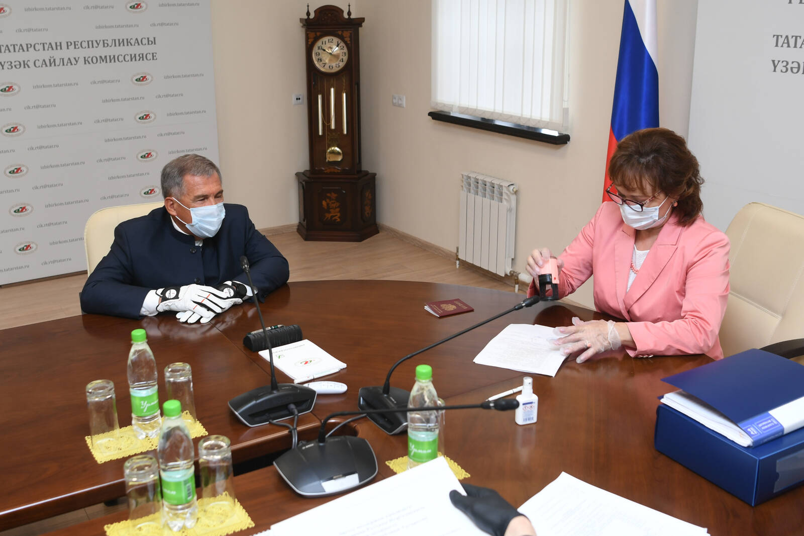 Представление Рустамом Миннихановым в Центральную избирательную комиссию Республики Татарстан документов для регистрации кандидатом на должность Президента Республики Татарстан