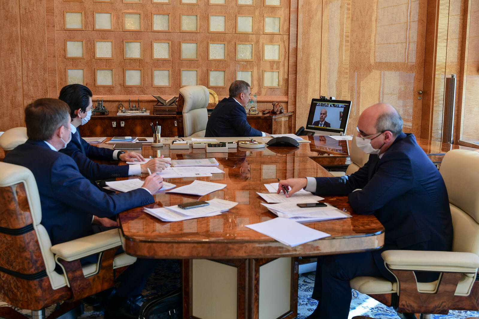 Онлайн совещание с представителями малого и среднего бизнеса в туристической отрасли. Принимает участие Президент Республики Татарстан Р.Н. Минниханов.
