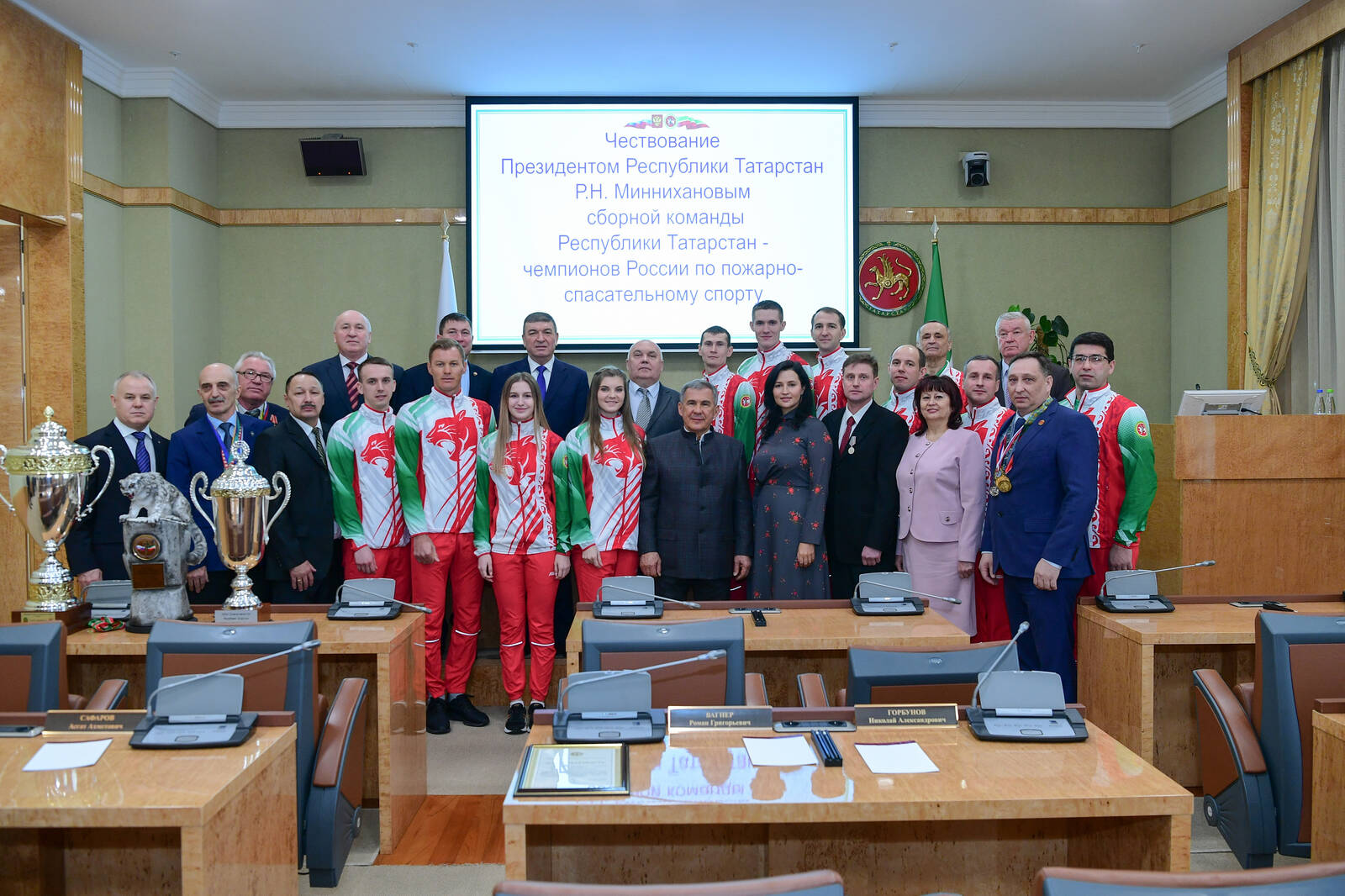 Чествование Президентом Республики Татарстан Р.Н. Миннихановым сборной команды Республики Татарстан - чемпионов России по пожарно-спасательному спорту