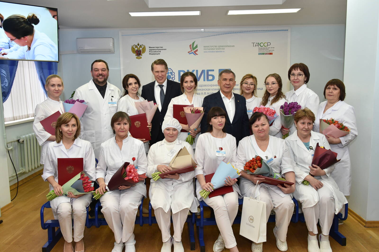 Посещение Президентом Татарстана Рустамом Миннихановым и министром здравоохранения Российской Федерации Михаилом Мурашко Республиканской клинической инфекционной больницы в Казани.