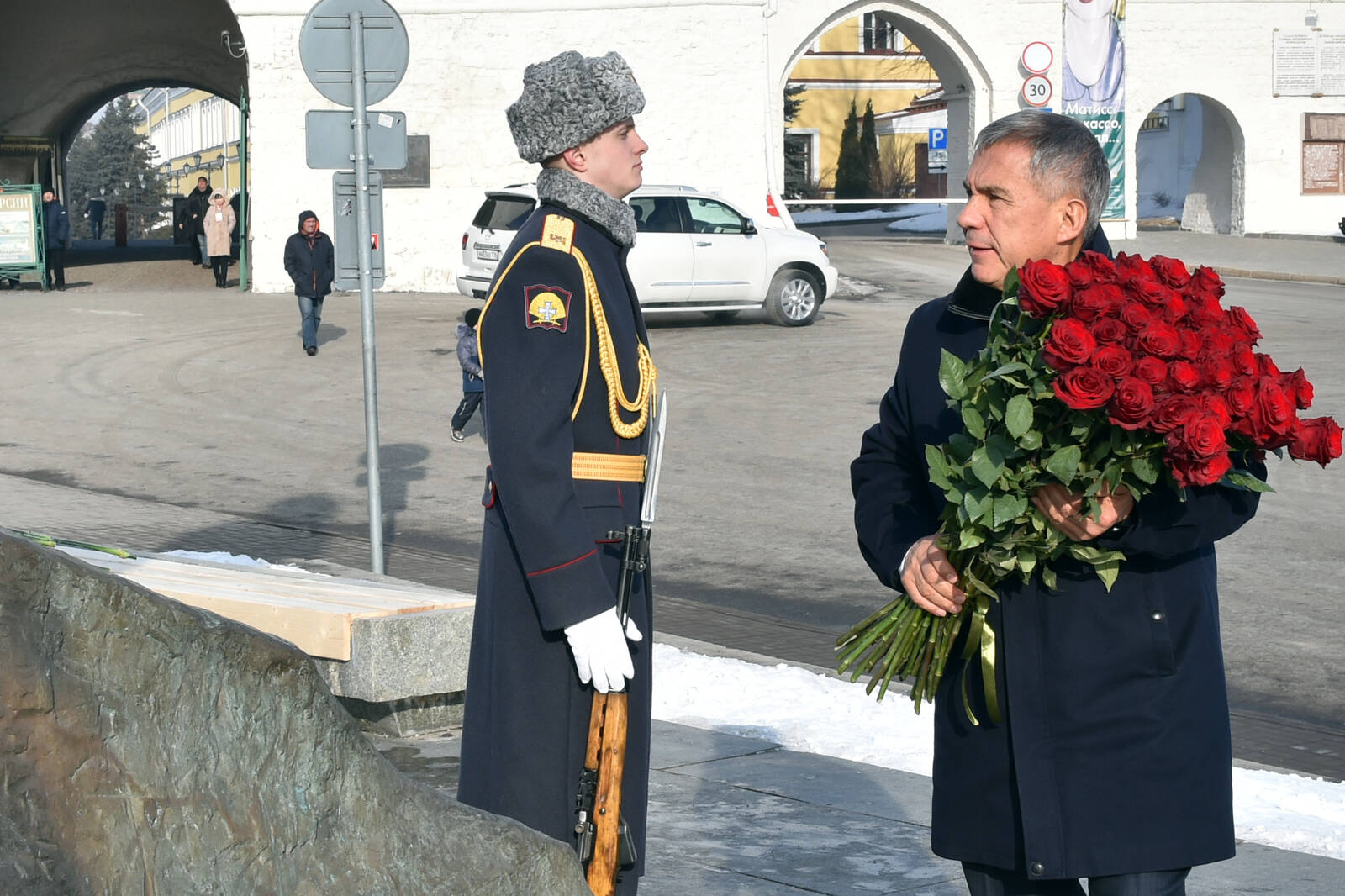 Возложение цветов к памятнику Мусы Джалиля в Казани. Принимает участие Президент Республики Татарстан Р.Н.Минниханов.