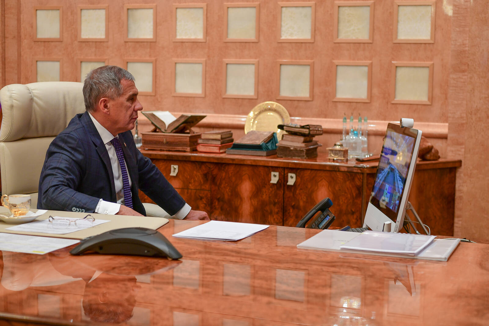 Заседание Бюро Высшего совета Партии "Единая Россия". Принимает участие в режиме видеоконференции Президент Республики Татарстан Р.Н. Минниханов.