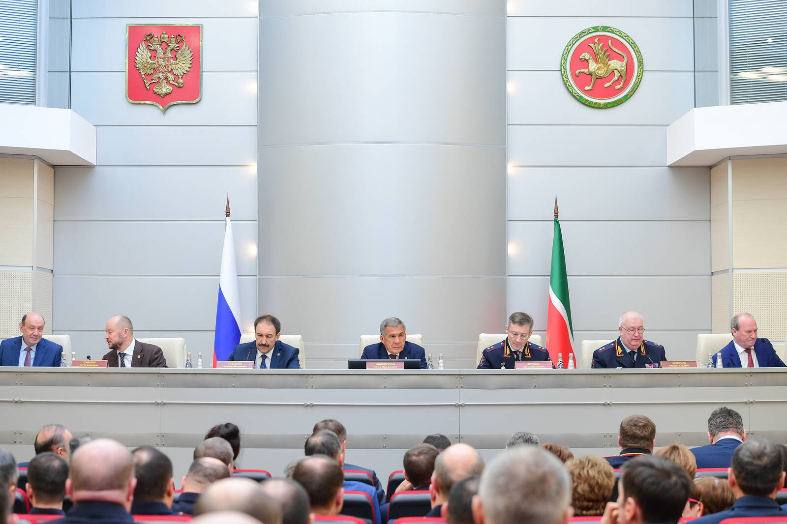 Расширенное заседание коллегии в режиме видеоконференции Министерства внутренних дел по Республике Татарстан"Об итогах оперативно-служебной деятельности органов и подразделений внутренних дел за 2019 год и задачах на последующий период". Принимает участие Президент Республики Татарстан Р.Н. Минниханов.