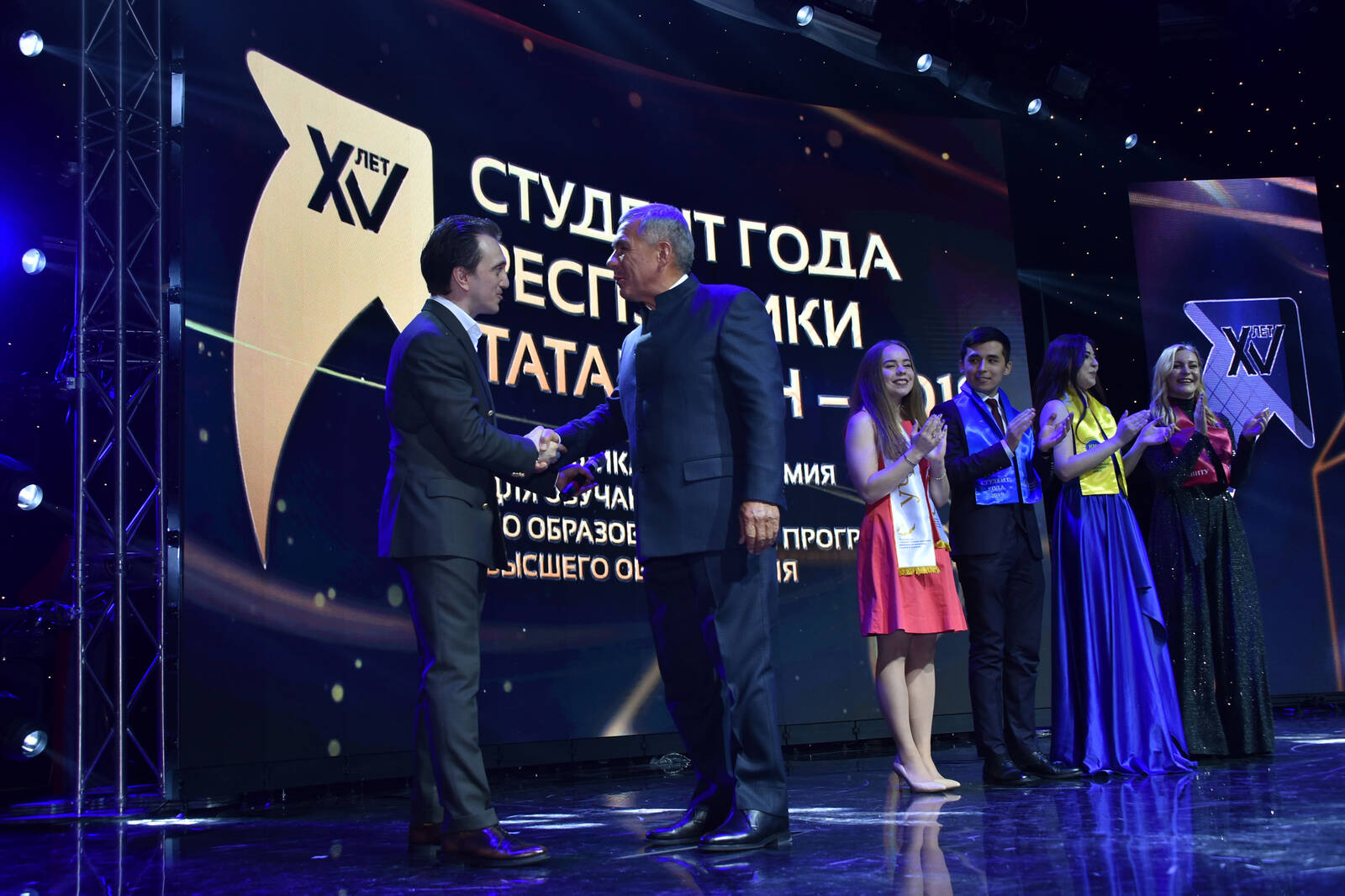 Торжественная церемония награждения победителей и лауреатов премии "Студент года Республики Татарстан – 2019". Принимает участие Президент Республики Татарстан Р.Н. Минниханов.фото Р.Кадыров.