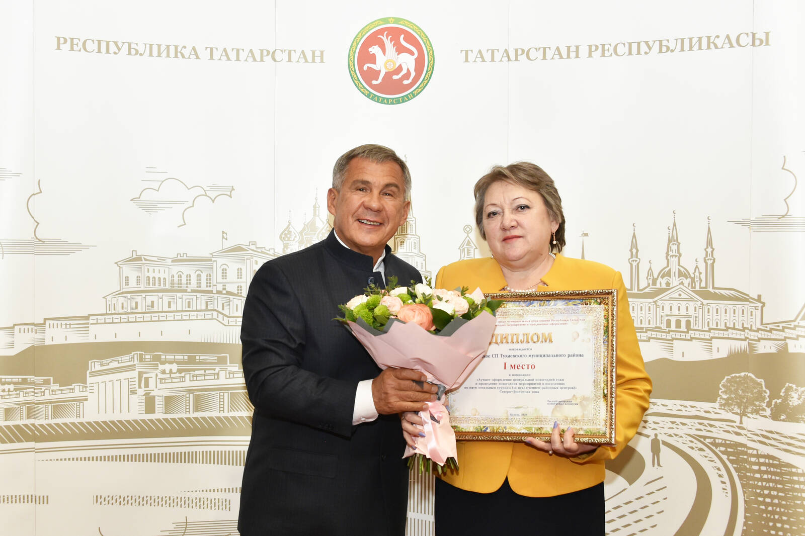 Церемония награждения победителей Республиканского конкурса среди муниципальных образований Республики Татарстан на лучшее новогоднее мероприятие и праздничное оформление в 2020 году. Проводит Президент Республики Татарстан Р.Н. Минниханов.