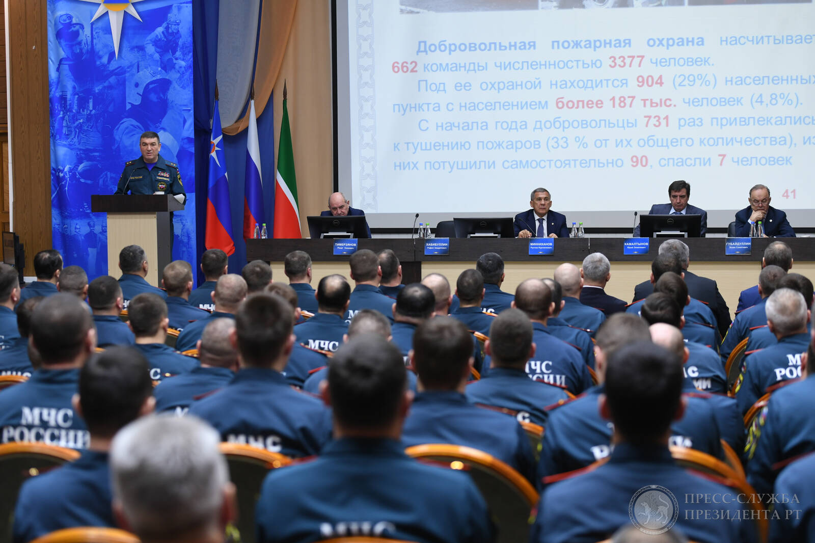 Совместное заседание коллегий Главного управления Министерства чрезвычайных ситуаций России по Республике Татарстан и Министерства по делам гражданской обороны и чрезвычайным ситуациям Республики Татарстан. Принимает участие Президент Республики Татарстан Р.Н. Минниханов.