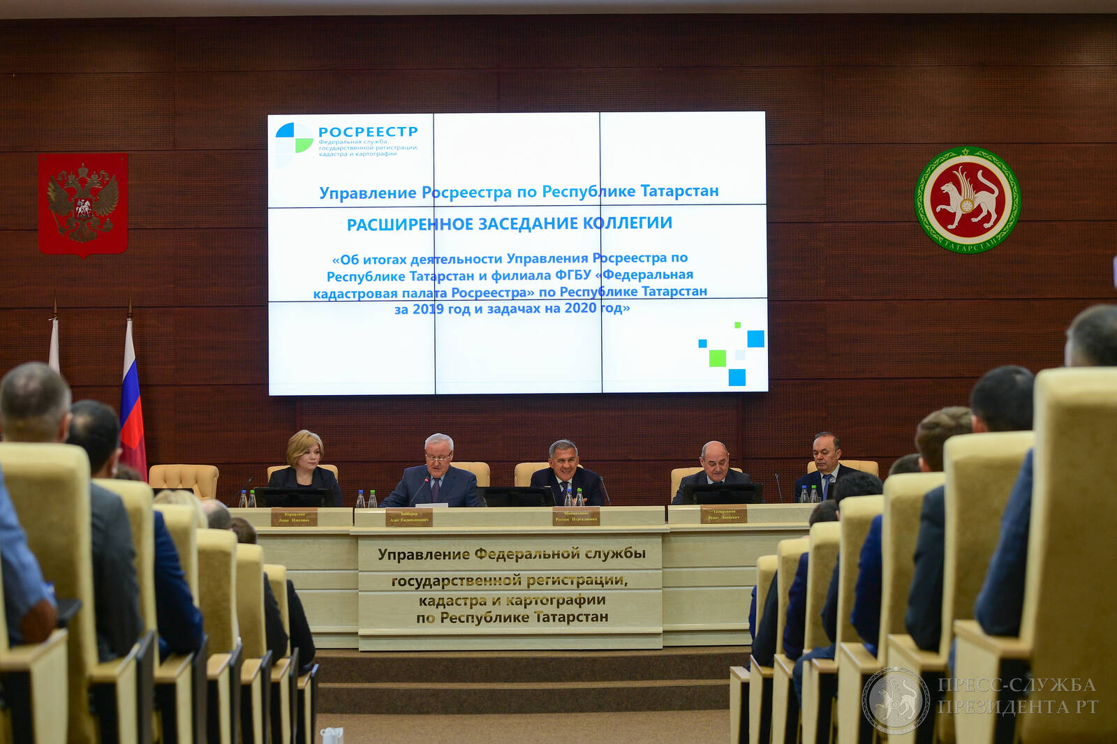 Расширенное заседание коллегии Управления Федеральной службы государственной регистрации, кадастра и картографии по Республике Татарстан "Об итогах деятельности Управления Федеральной службы государственной регистрации, кадастра и картографии по Республике Татарстан за 2019 год и задачах на 2020 год". Принимает участие Президент Республики Татарстан Р.Н. Минниханов.