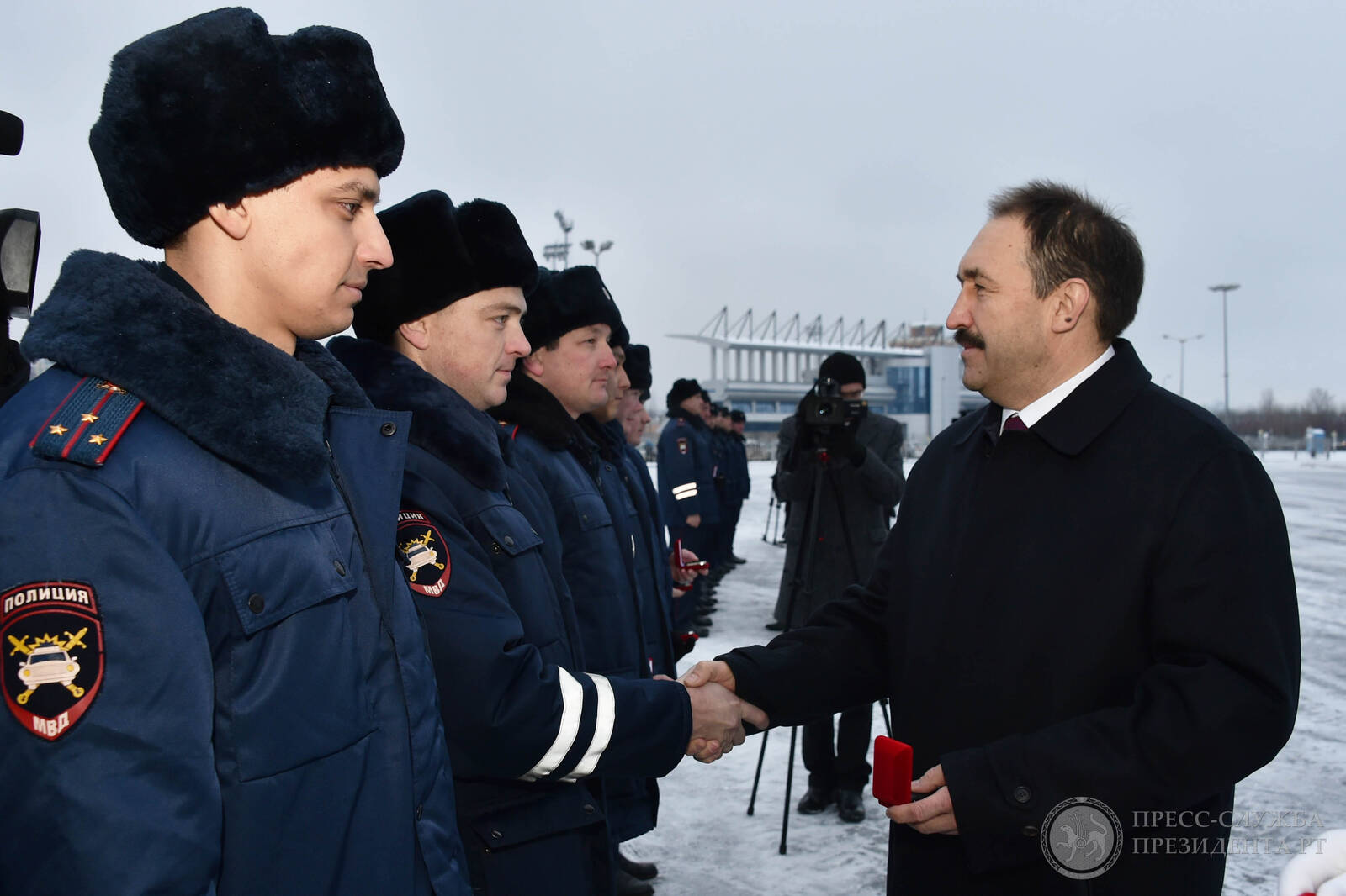 Торжественное мероприятие по случаю вручения автомобилей подразделениям ГИБДД Министерства внутренних дел по Республике Татарстан. Принимает участие Премьер-министр Республики Татарстан А.В. Песошин.