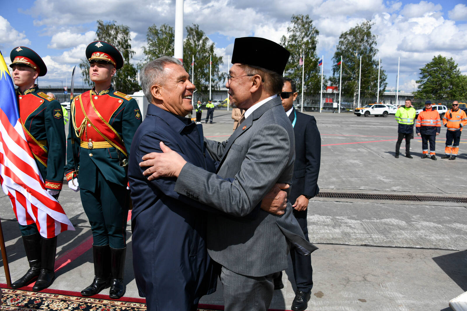 Прибытие Премьер-министра Малайзии Анвара Ибрагима в г.Казань. Встречают Раис Республики Татарстан Р.Н.Минниханов, Премьер-министр Республики Татарстан А.В.Песошин.