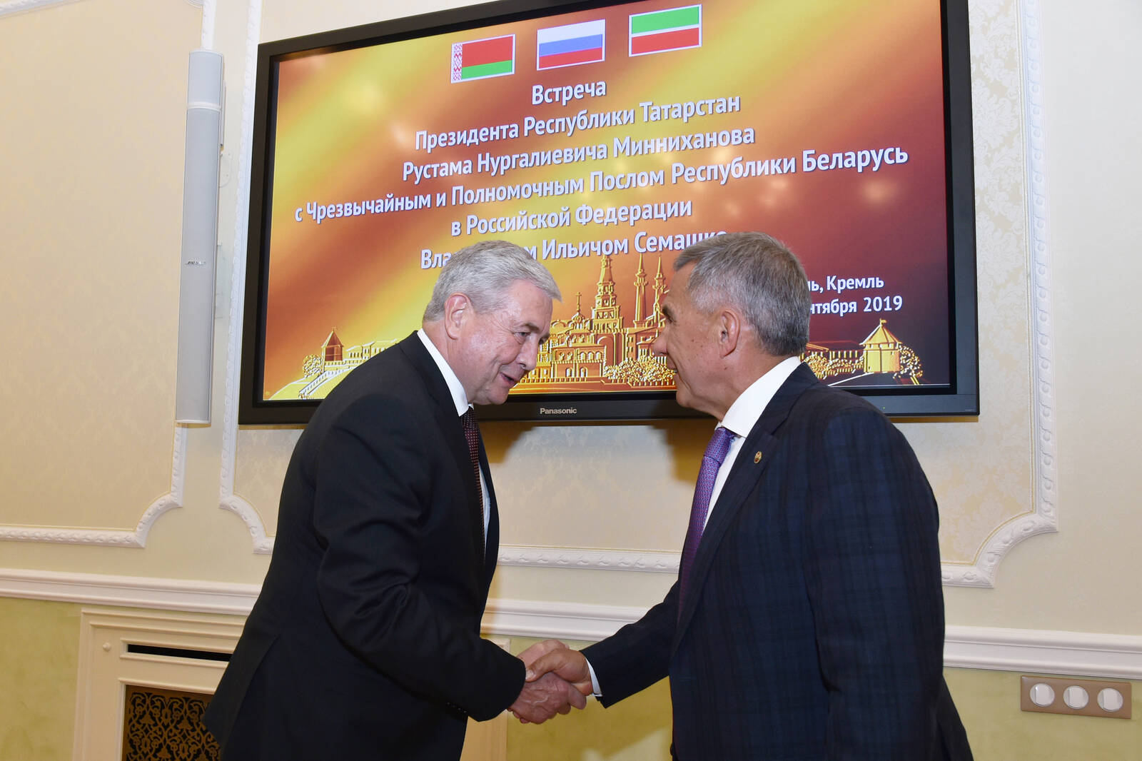 Встреча Президента Республики Татарстан Р.Н. Минниханова с Чрезвычайным и Полномочным Послом Республики Беларусь Владимиром Ильичем Семашко